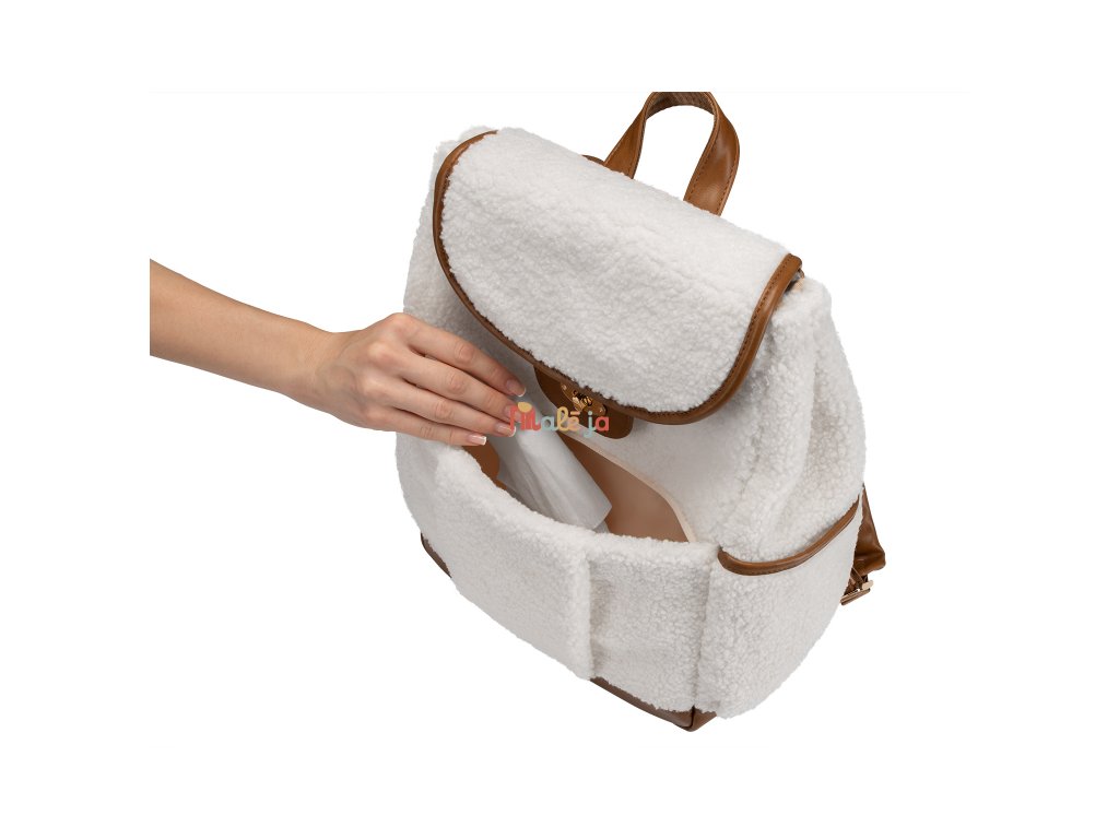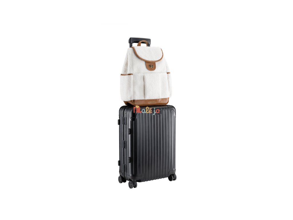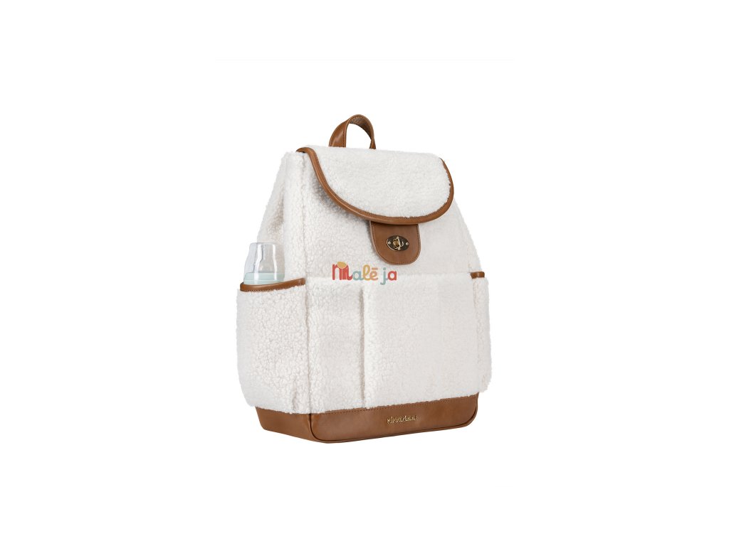 Prebaľovací batoh z plyšového materiálu s detailmi z umelej kože umožňuje prehľadné uloženie všetkého potrebného na prechádzky a výlety s vašim dieťaťom. Klipy umožňujú zavesenie na madlá kočíka. Magnetické uzatváranie s otočným kovovým uzáverom umožňujú ľahké otvorenie batohu jednou rukou.
