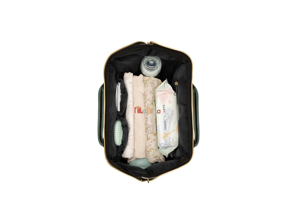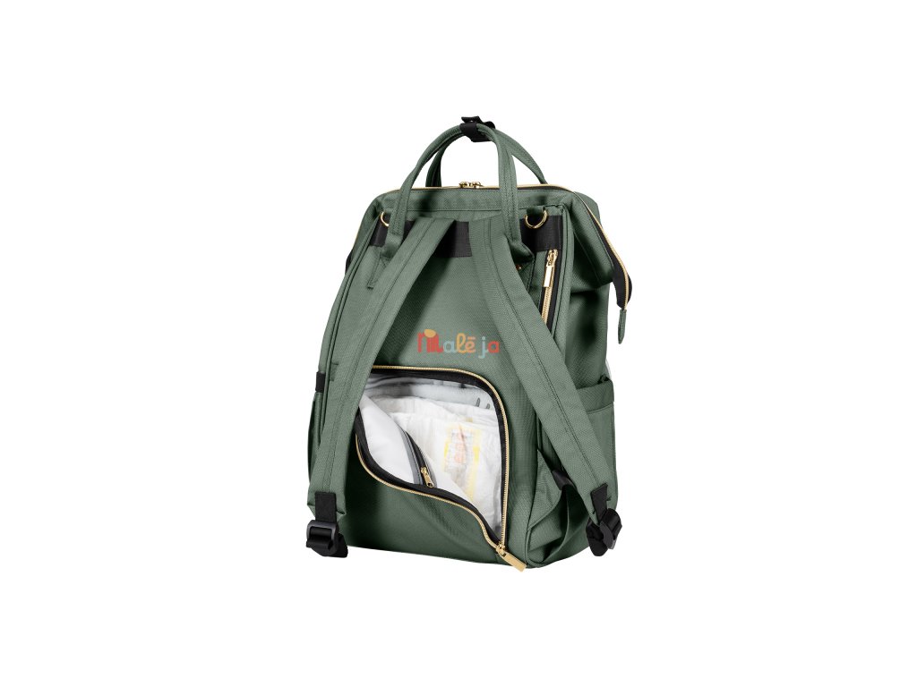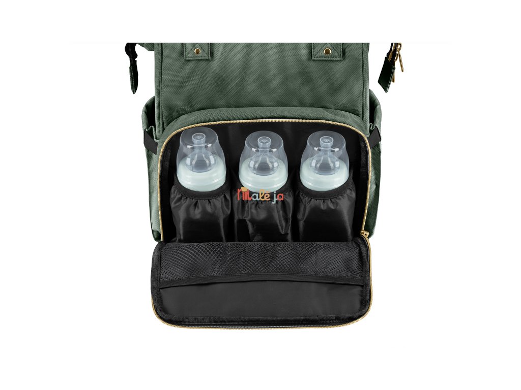 Vnútri batohu nájdete množstvo vreciek a priehradok aj vodeodolné vrecko na uloženie vlhkých predmetov. Široký spôsob otvárania batohu uľahčuje orientáciu v uloženom obsahu. Na vonkajšej strane nájdete vrecká s uzatváraním na zips aj vrecko na uloženie fľaše. Termoizolačné vrecká na fľaše pomáhajú udržať nápoje či mlieko dlhšiu dobu v optimálnej teplote. Súčasťou plecniaka je aj prebaľovacia podložka.