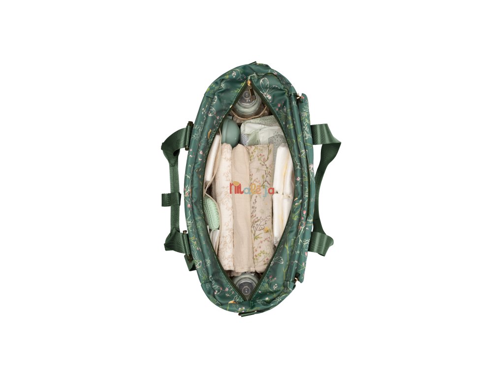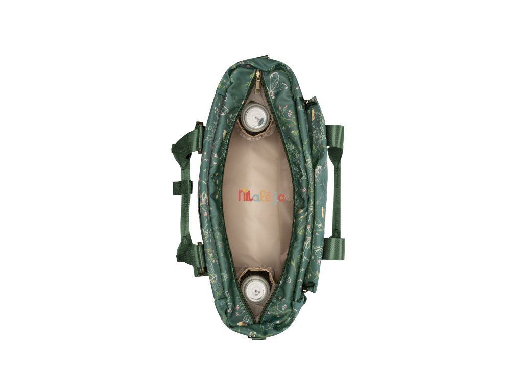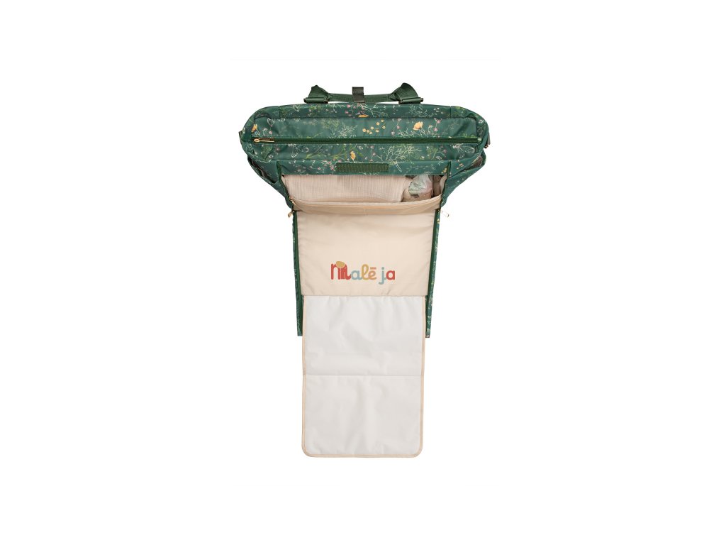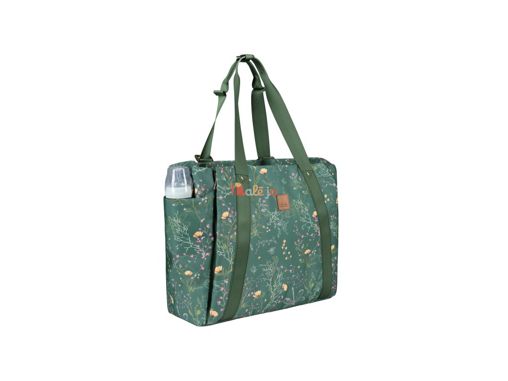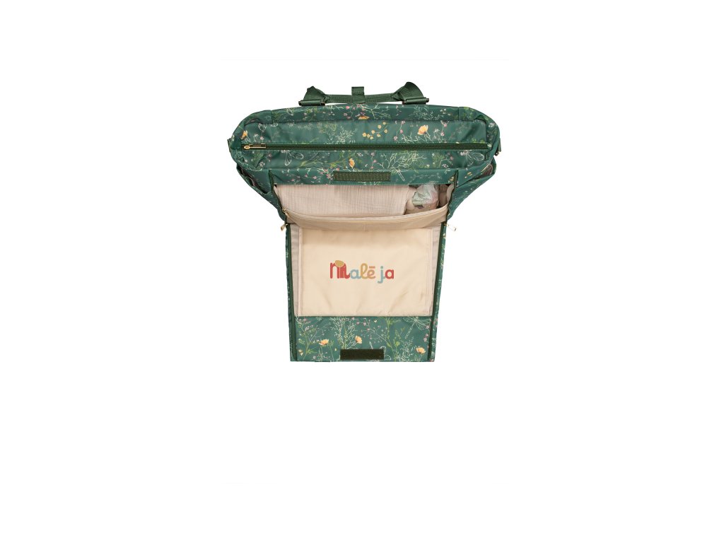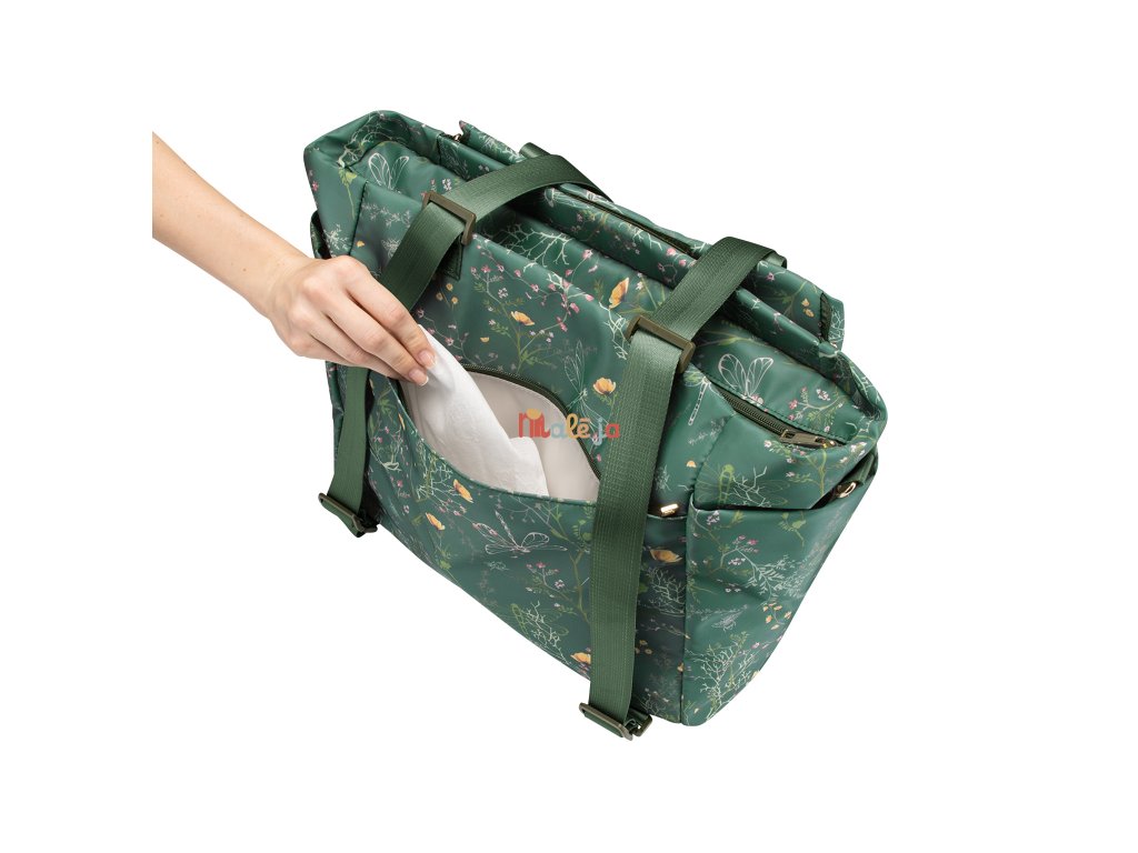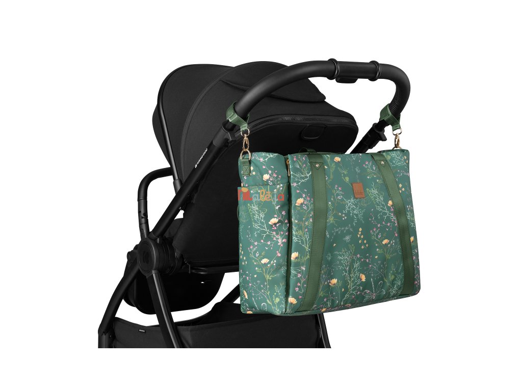 Štýlová prebaľovacia taška umožňuje prehľadné uloženie všetkého potrebného na prechádzky a výlety s vašim dieťaťom. Nastaviteľné držadlá umožňujú nosiť tašku aj ako batoh na chrbte. Klipy umožňujú zavesenie na madlá kočíka. Vnútri tašky nájdete množstvo vreciek a priehradok aj vodeodolné vrecko na uloženie vlhkých predmetov. Široký spôsob otvárania tašky uľahčuje orientáciu v uloženom obsahu. Na vonkajšej strane nájdete vrecká na uloženie fľaše. Termoizolačné vrecká na fľaše pomáhajú udržať nápoje či mlieko dlhšiu dobu v optimálnej teplote. Predné vyklápacie vrecko obsahuje integrovanú prebaľovaciu podložku a po otvorení umožňuje aj prístup do vnútorného priestoru tašky. Tašku je možné zavesiť na kočík, nasadiť na rukoväť kufra, nosiť na chrbte aj v ruke. Zloženie: 100% polyester Rozmery: 43 x 35 x 17 cm