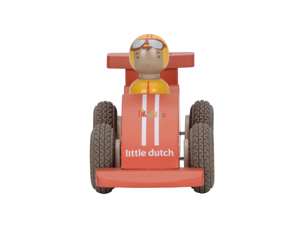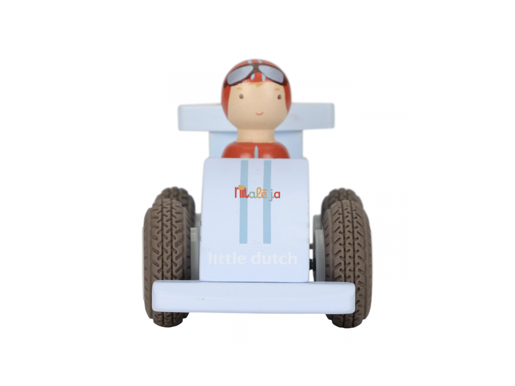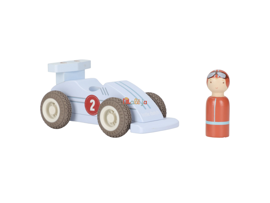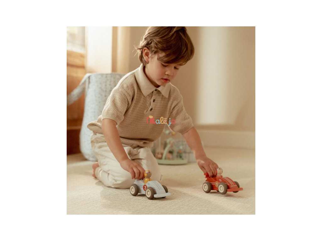 Každé autíčko má veselého vodiča v podobe vyberateľného panáčika, ktorého možno ľahko vymeniť, a tak podporiť kreatívnu hru a fantáziu. Pevné drevené prevedenie a kolieska s gumovými pneumatikami zaisťujú hladkú a tichú jazdu po akomkoľvek povrchu.
