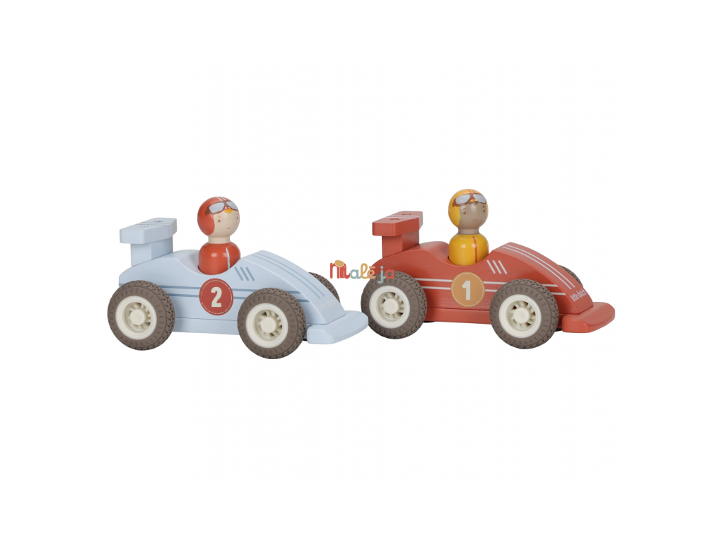 Pripraviť, pozor… štart! Súprava dvoch drevených autíčok na zotrvačník poteší každého malého pretekára. Stačí autíčko natiahnuť dozadu, pustiť - a sledovať, ako sviští vpred neuveriteľnou rýchlosťou.