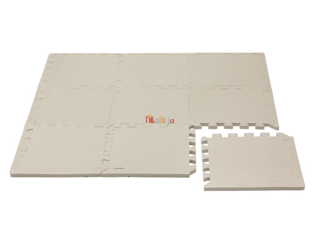 Vynikajúca zosilnená penová puzzle tvoriaca hraciu podlahu v béžovej farbe s rovnými okrajmi. Zložte si svoj vlastný, originálny hrací koberec tak, aby ozdobil vašu detskú izbičku. Balenie obsahuje celkom 9 kusov puzzlí, každá 31,5 x 31,5 cm a 12 okrajov. Penová podlaha je vyrobená z extra hustej peny hrúbky 1,4 cm, takže sa na nej deti môžu hrať a bezpečne spadnúť. Hracia podložka z puzzlí chráni plaziace alebo batoliace sa dieťa pred chladom, hlukom a nárazom. Veľmi vhodné na dlažbu alebo plávajúcu podlahu. Podložka môže byť alternatívne zostavená aj do štvorcovej krabice. Pokiaľ máte viac podložiek, môžete vytvoriť ďalšie krabice, ktoré dieťa môže skladať. Veľa možností pre aktívnu hru. Mnoho spôsobov využitia, napr. podlaha do stanu pri kempovaní, podlaha do auta, pokiaľ v ňom budete chcieť prespať. Plne kompatibilné s penovými puzzlami BabyDan.