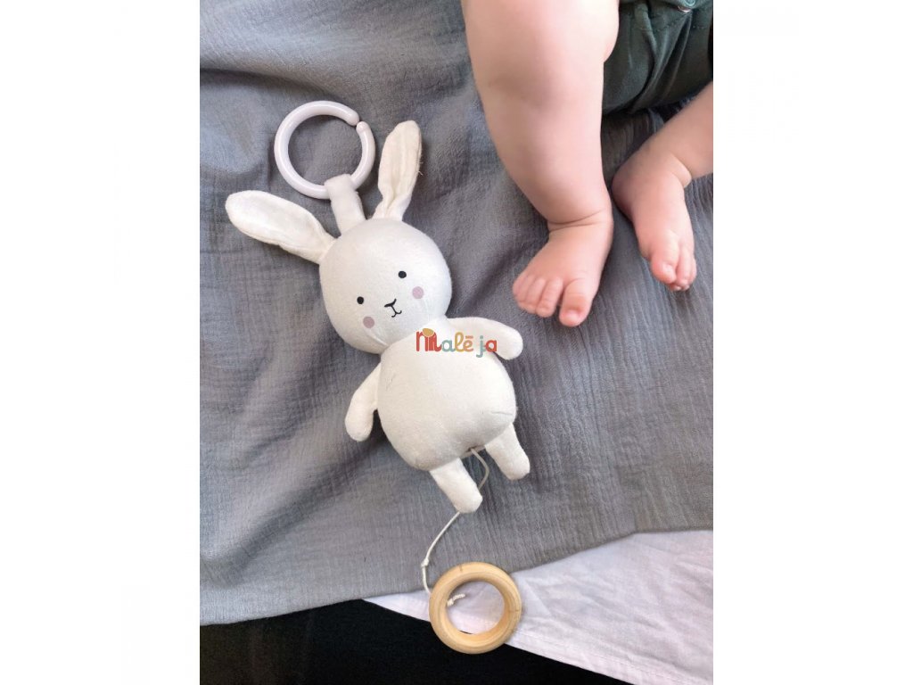 Nechajte svoje dieťa zaspať s upokojujúcou melódiou. Ak chcete aktivovať hudobnú funkciu, potiahnite závesný drevený prsteň a hračka bude hrať uspávanku. Vyrobené z najjemnejších mušelínu a plniacej polyesterovej vlákniny.