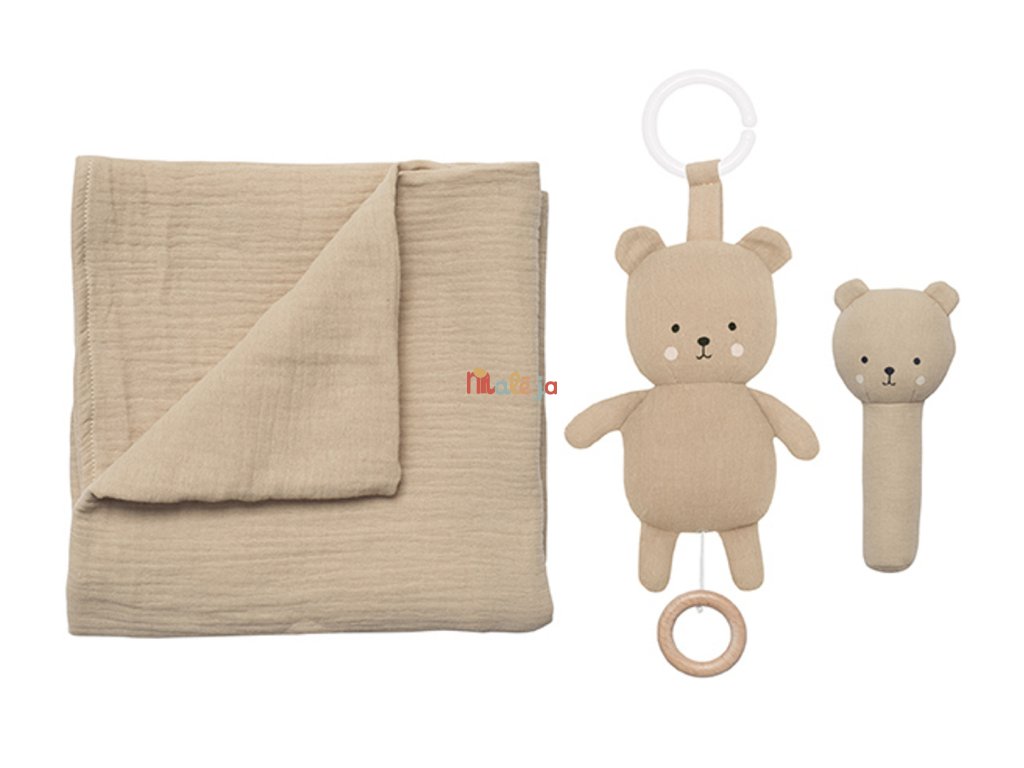 Jabadabado Darčekový set s mušelínovou dečkou, hrkálkou a hudobnou hračkou. Najexkluzívnejší darček pre bábätko prichádza v bohatej darčekovej krabičke a obsahuje tri dôkladne vybrané položky, ktoré bábätku poskytnú dobrý štart do života. Mäkká deka je vyrobená zo 100% mušelínovej bavlny a je nevyhnutná pre novorodenca. Roztomilá hudobná hračka hrá príjemnú melódiu. Detská hrkálka je vhodná do malej rúčky. Jednoducho ideálny darček pre malé bábätko alebo mamičku.