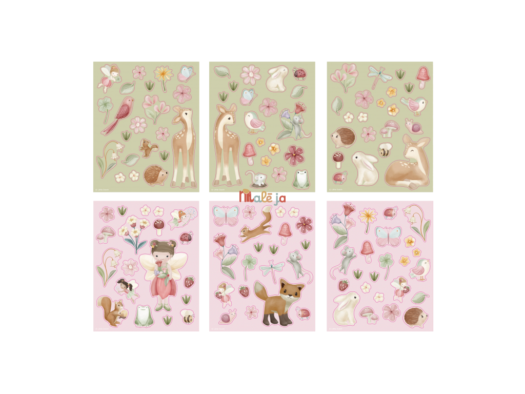 Sada šiestich hárkov krásnych samolepiek z kolekcie Little Dutch Fairy s krásnymi motívmi zo života na záhrade. Samolepky sú vhodné na lepenie na papier.