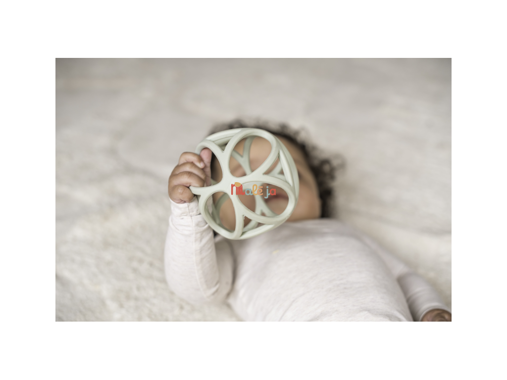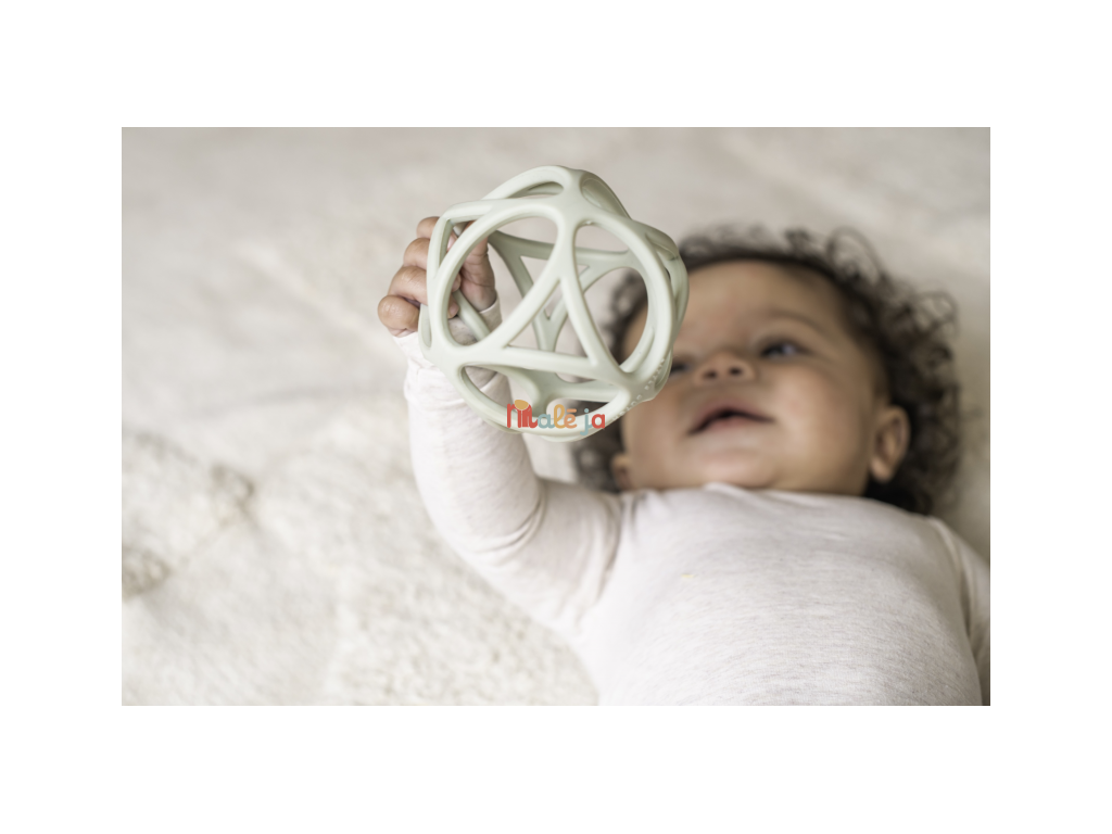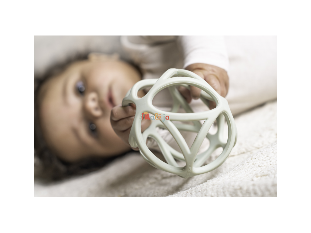 Ľahučká loptička z jemného silikónu má tvar pre ľahké uchopenie detskými ručičkami. Loptička láka dieťa na skúmanie rukami aj ústami, slúži tak aj ako hryzátko, čo oceníte pri prerezávaní prvých zúbkov vášho dieťaťa.