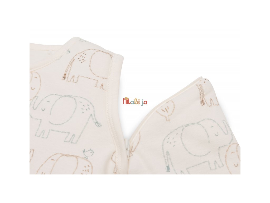 Praktický spací vak s oddeliteľnými rukávmi ponúka variabilitu pri použití podľa počasia a teploty v miestnosti. Vďaka jemnej výplni je vhodný na použitie namiesto perinky. Spací vak zaistí, že sa dieťa v noci neodkope a bude tak po celú dobu spánku v pohodlí a teple bez rizika prechladnutia. Kryté zipsy v prieramkoch umožňujú ľahké oddelenie rukávov, pokiaľ chcete spací vak používať v teplejšom prostredí bez rukávov. Zips na prednej strane umožňuje ľahké vloženie dieťaťa do spacieho vaku a prebaľovanie počas spania.