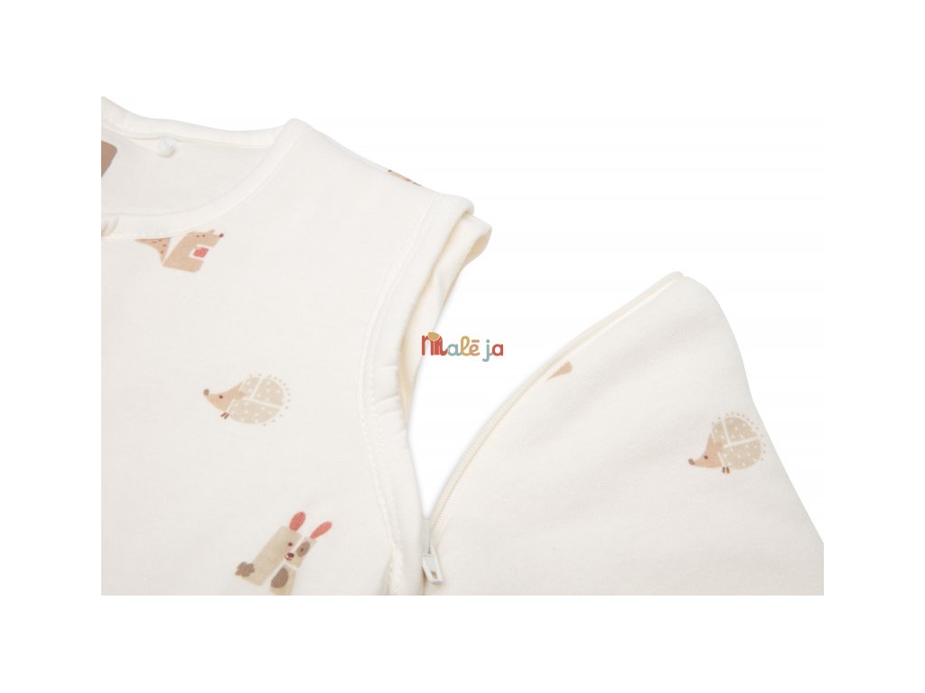Praktický spací vak s oddeliteľnými rukávmi ponúka variabilitu pri použití podľa počasia a teploty v miestnosti. Vďaka jemnej výplni je vhodný na použitie namiesto perinky. Spací vak zaistí, že sa dieťa v noci neodkope a bude tak po celú dobu spánku v pohodlí a teple bez rizika prechladnutia. Kryté zipsy v prieramkoch umožňujú ľahké oddelenie rukávov, pokiaľ chcete spací vak používať v teplejšom prostredí bez rukávov. Zips na prednej strane umožňuje ľahké vloženie dieťaťa do spacieho vaku a prebaľovanie počas spania.