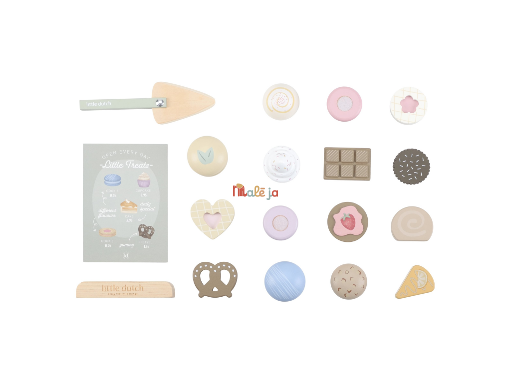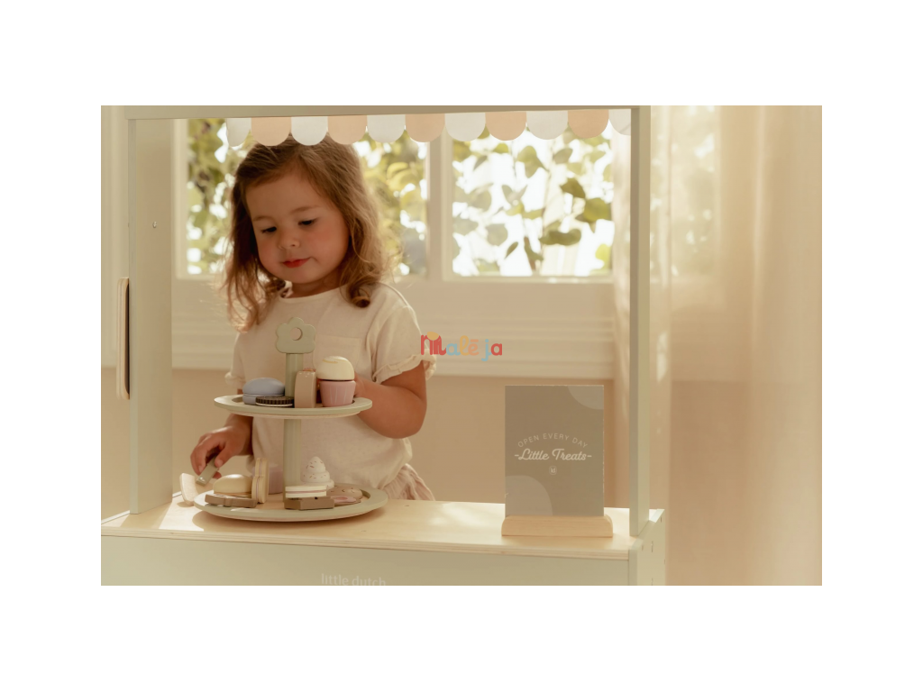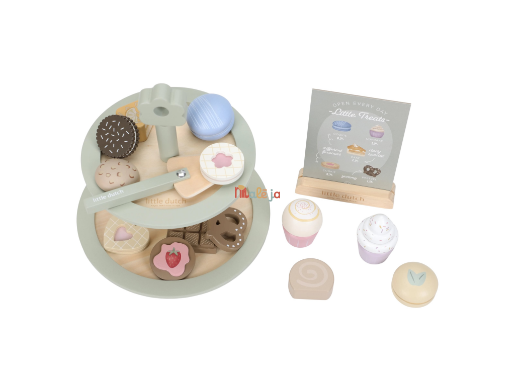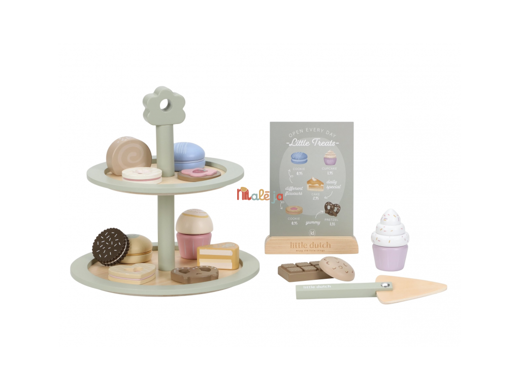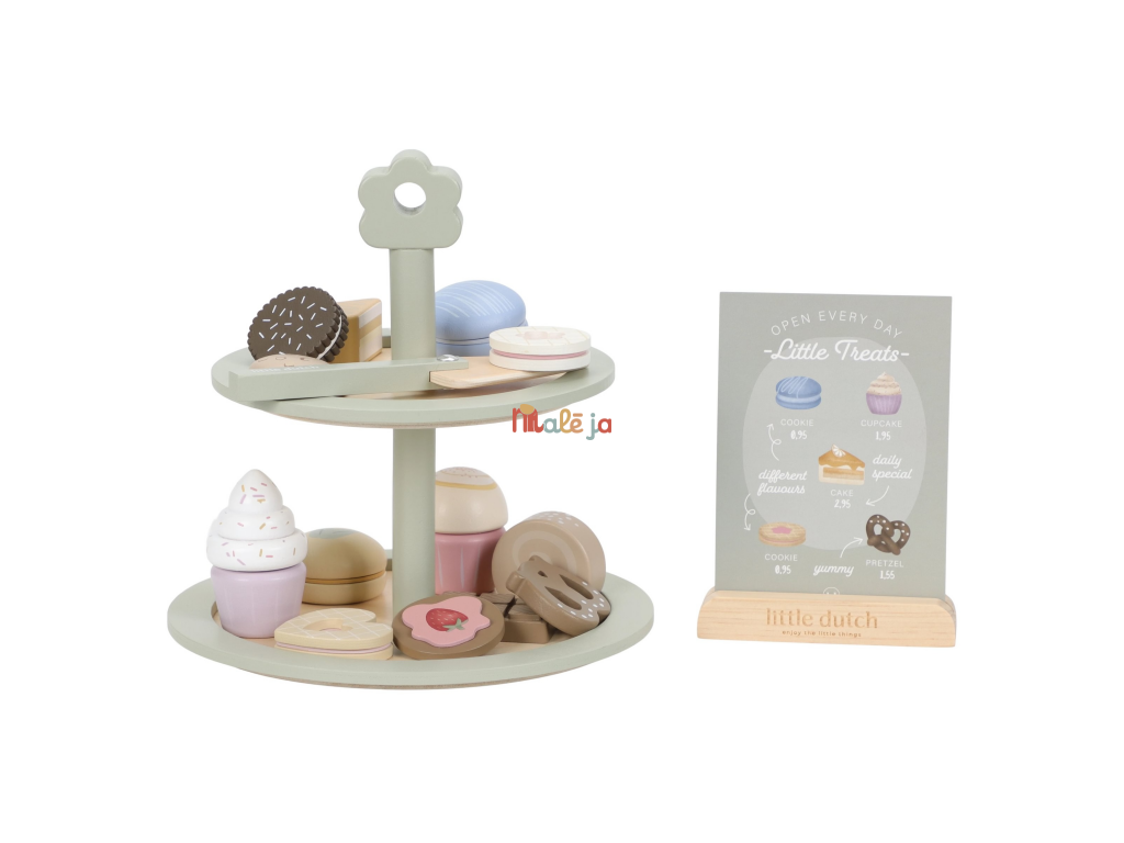 Máte chuť na sladký dezert? Nádherný stojan na pečivo Little Dutch s výberom sladkých dobrôt je ako stvorený pre všetkých malých hostiteľov a hostiteľky. Na dvoch poschodiach môžu aranžovať a ponúkať svojim hosťom rôzne druhy lákavých zákuskov. Vďaka obrázkovému menu si hostia môžu vyberať a objednávať svoju obľúbenú sladkosť.