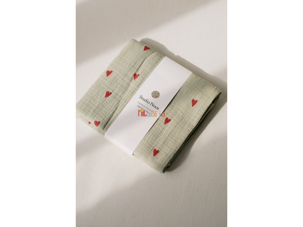 STUDIO NOOS - SWADDLE ZAVINOVAČKA Print Medium Green Hearts