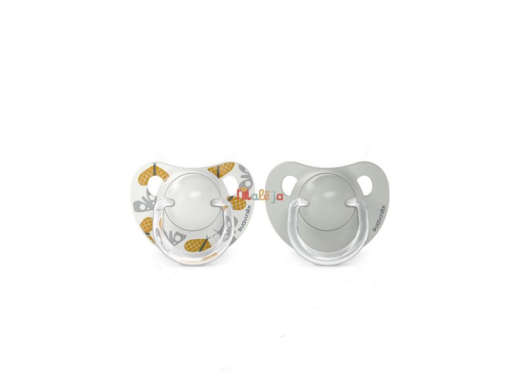 Cumlík je veľkým pomocníkom pre pokoj Vášho bábätka, či už pri spánku alebo vychádzke. Je dokázané, že sanie cumlíka uvoľňuje endorfín, takzvaný hormón šťastia, ktorý prináša bábätku príjemný pocit, ktorý ho upokojuje a konší. Doprajte bábätku cumlík namiesto prstov či pästičky, pretože tento variant môže veľmi porušiť dentálny vývoj. Všetky cumlíky aj cumlíky sú podporené a vyrábané v spolupráci s Asociáciou španielskych detských ortodontistov a rešpektujú prirodzený vývoj ďasien, zubov i podnebia dieťaťa. Farby použité na dekorovanie výrobkov značky Suavinex sú prírodné a netoxické.