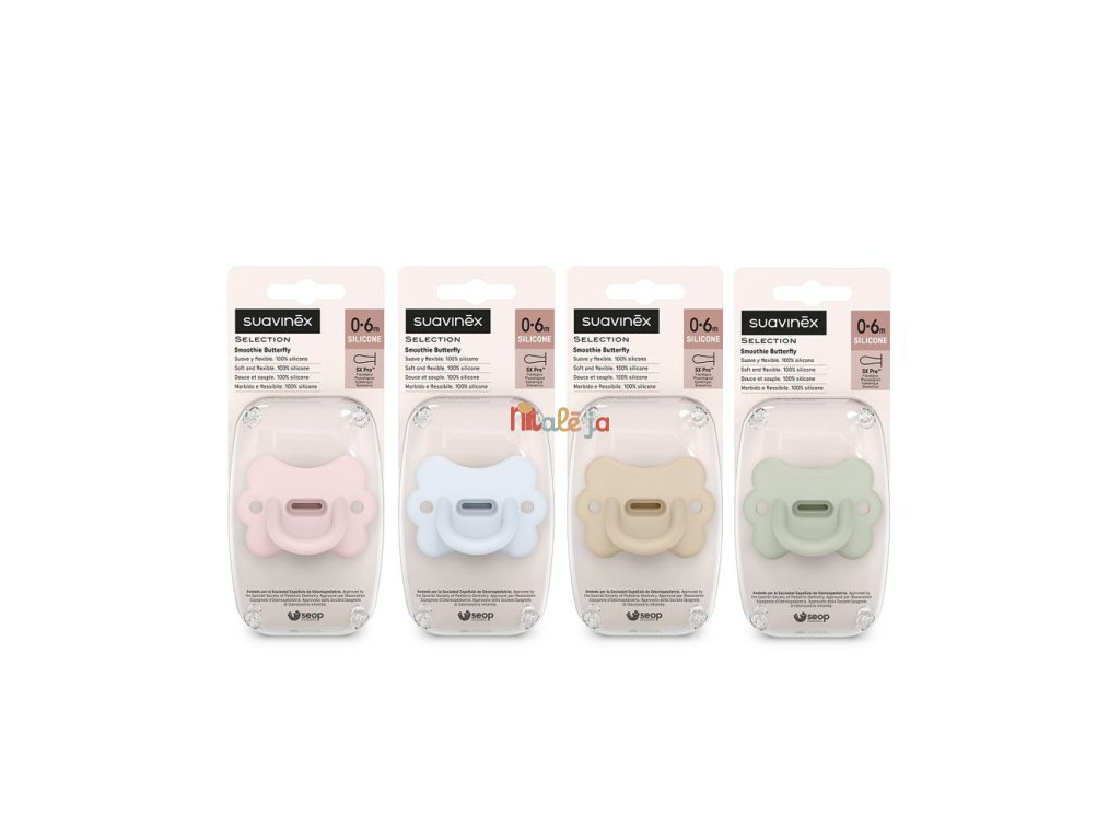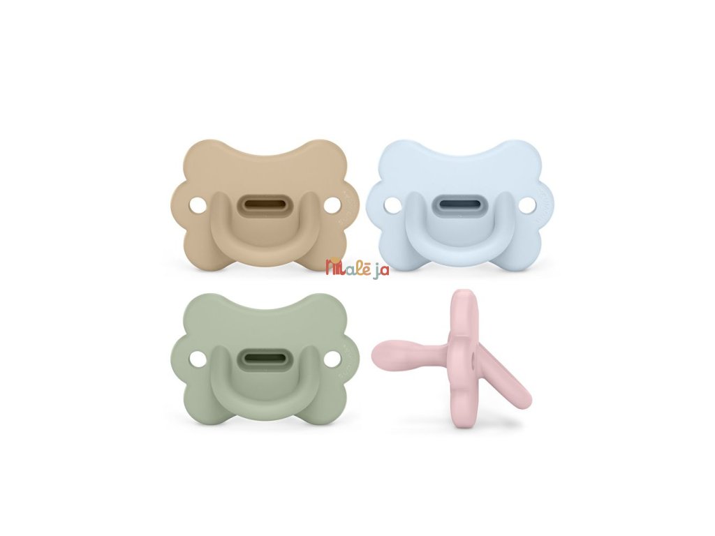 Mäkučký celosilikónový cumlík Colour essence sx pro od značky Suavinex v pastelových farbách - vyrobený z jedného kusu silikónu, s ergonomickým štítkom, ktorý sa prirodzene adaptuje s potrebami detí, bez chuti a bez zápachu. Ponecháva jazyku viac miesta v ústnej dutine, aby bolo sanie čo anprirodzenejšie.