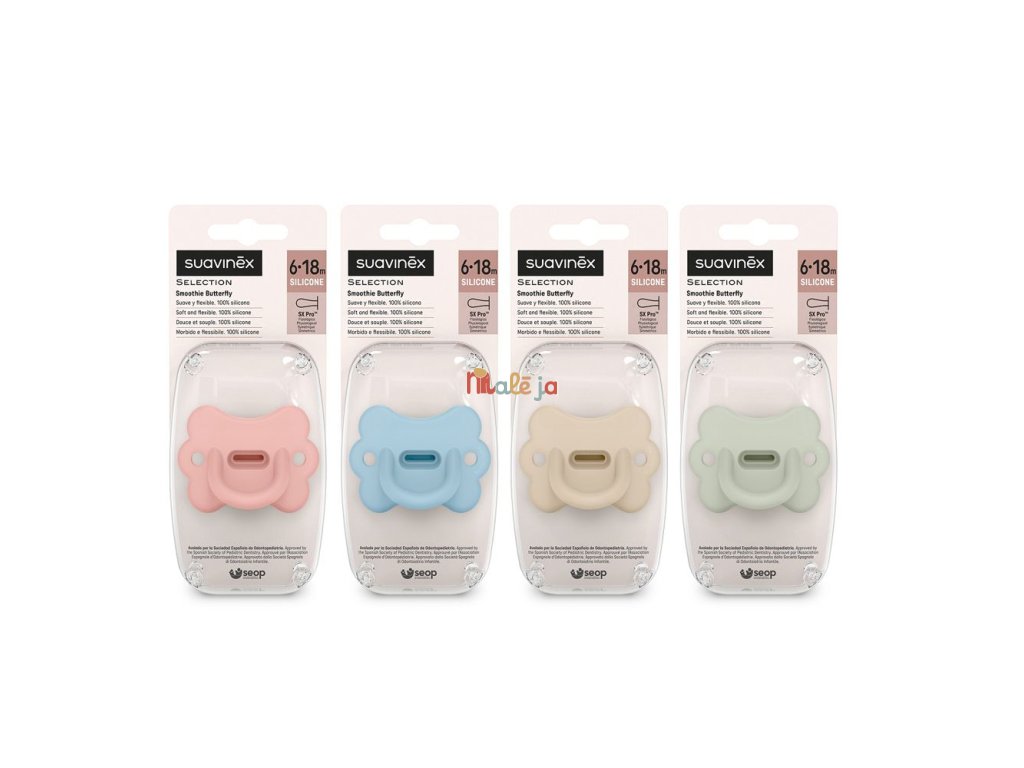 Mäkučký celosilikónový cumlík Colour essence sx pro od značky Suavinex v pastelových farbách - vyrobený z jedného kusu silikónu, s ergonomickým štítkom, ktorý sa prirodzene adaptuje s potrebami detí, bez chuti a bez zápachu. Ponecháva jazyku viac miesta v ústnej dutine, aby bolo sanie čo najprirodzenejšie.