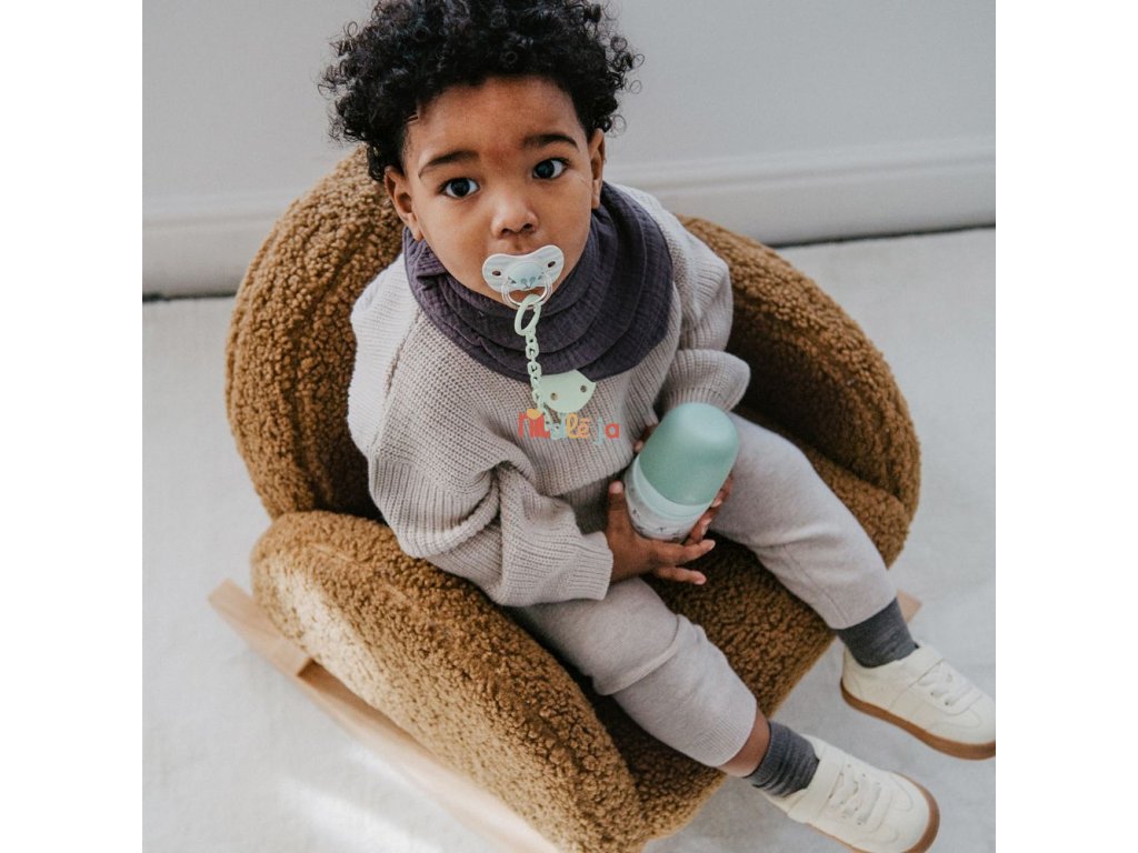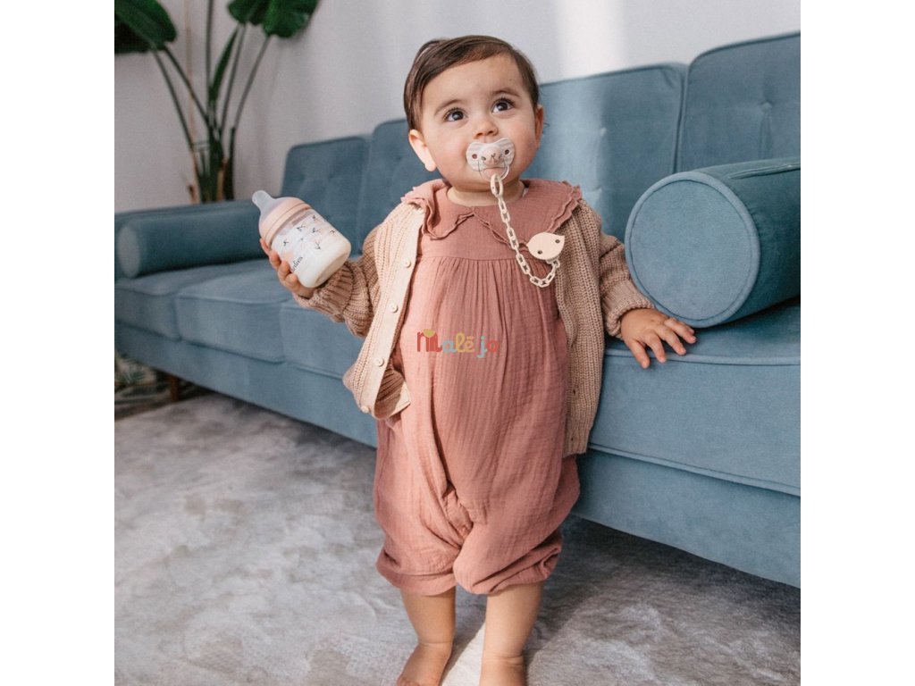- Poskytuje perám a ďasnám /zúbkom kľudový režim na krku cumlíka, ktorý je teraz dlhší a nezasahuje do hlavy cumlíka