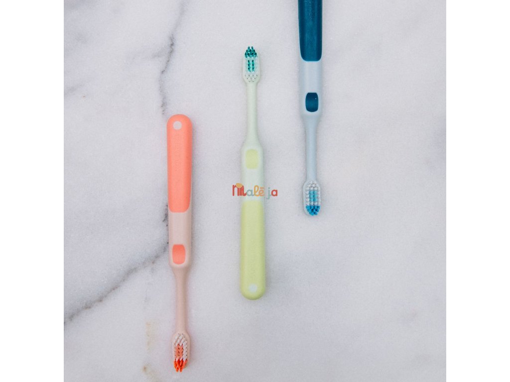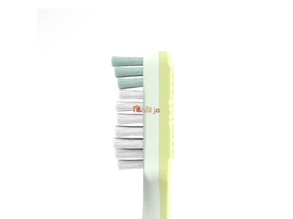 - Má mäkké štetinky usporiadané do tvaru ´Z´, ktoré lepšie dosiahnu do ťažko dostupných miest. Farebné označenie na štetinkách pomáha rodičom ľahko dávkovať správne množstvo zubnej pasty - veľkosti hrášku.