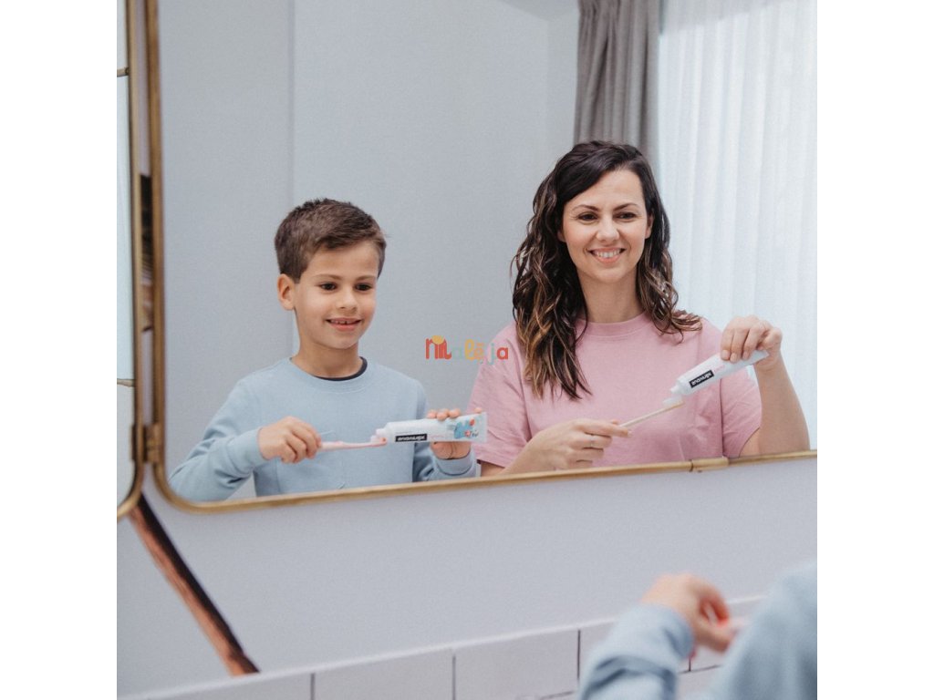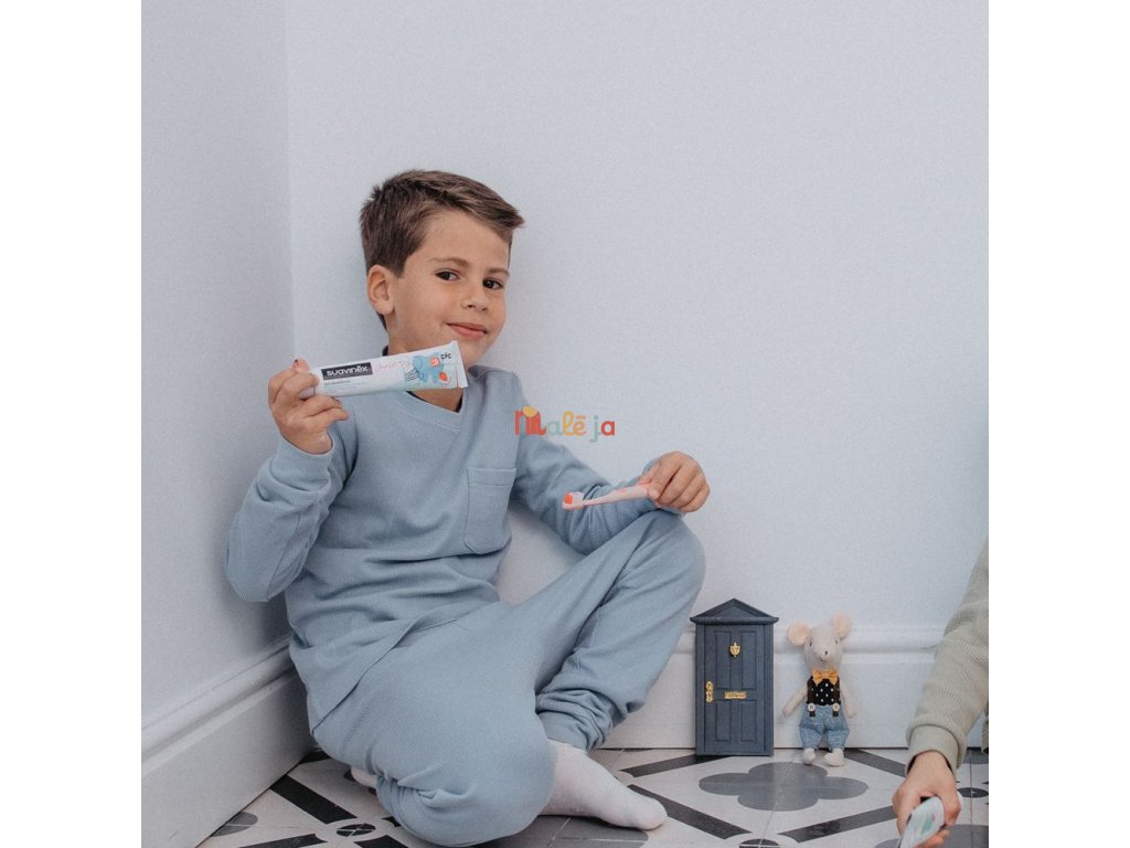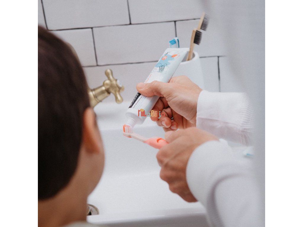 Zubná pasta je šetrná k detskej zubnej sklovine vďaka nízkej abrazívnosti, neobrusuje zúbky.