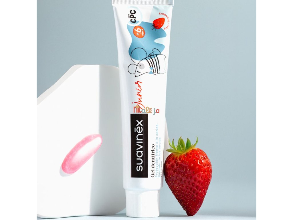 Detská zubná pasta Junior s jahodovou príchuťou a fluoridom chráni pred zubným kazom, stará sa o ďasná a je šetrná k sklovine - ideálna pre deti od 6 rokov.