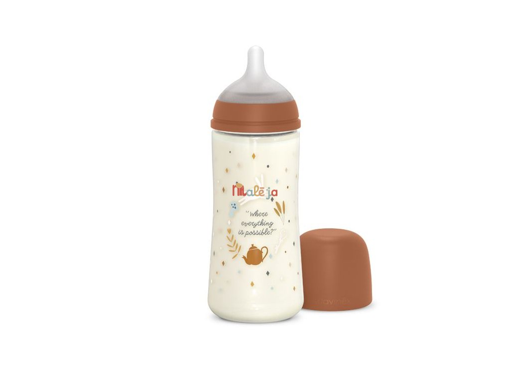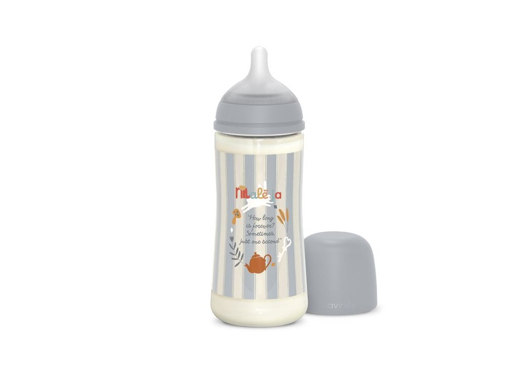 Napodobňuje textúru a konzistenciu matkynej bradavky a dosahuje: