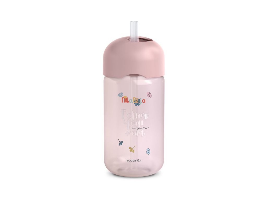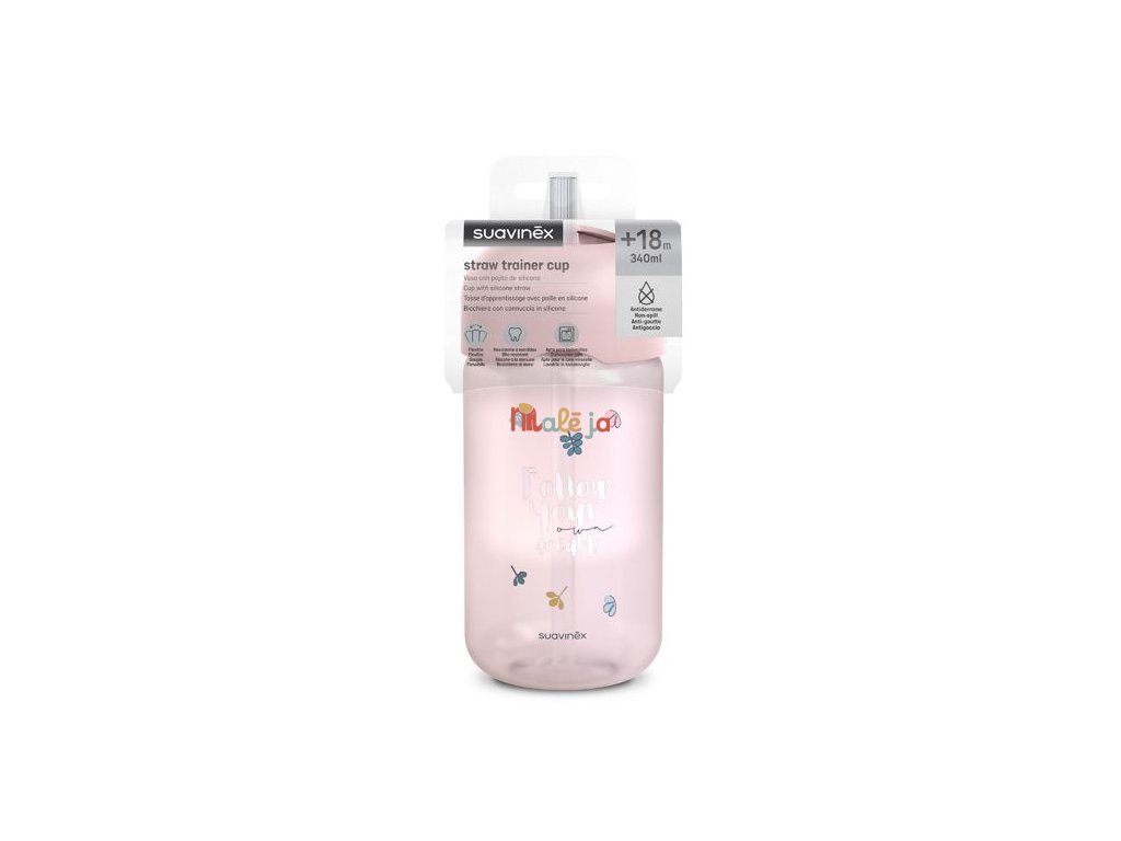 SUAVINEX Fľaštička so slamkou BEAR - RUŽOVÁ