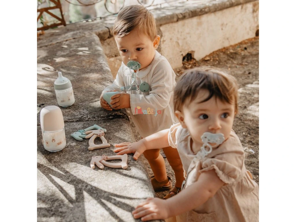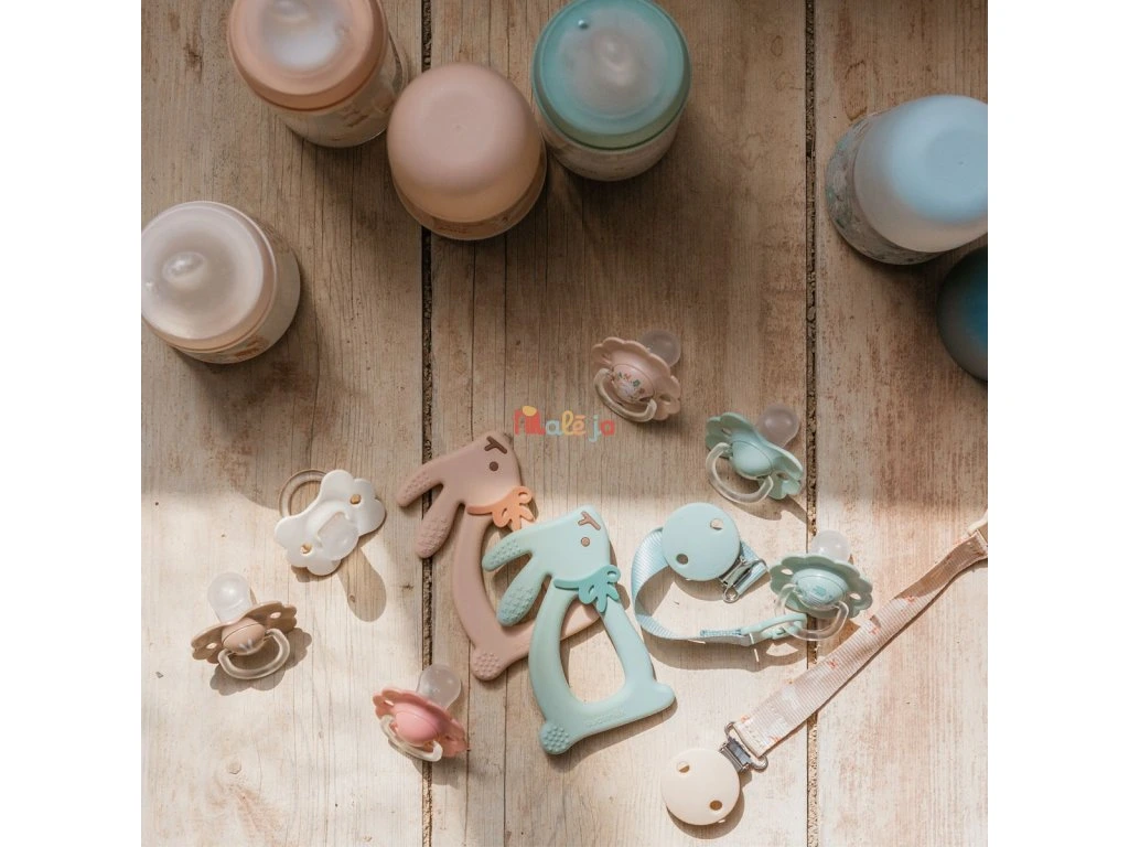 Mäkký a flexibilný silikón je šetrný k citlivým ďasnám, zatiaľ čo jemné výstupky pomáhajú uľaviť pri prerezávaní zúbkov a zároveň podporujú rozvoj jemnej motoriky.