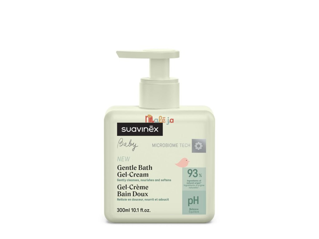 Suavinex Syndet čistiaci gélový šampón neobsahuje mydlo a je špeciálne navrhnutý tak, aby čistil pokožku a vlasy. Jeho olivové mastné kyseliny pomáhajú predchádzať vysušenie pokožky a výťažok z nechtíka je známy svojím upokojujúcim účinkom, kedy pomáha starať o citlivú pokožku. Prípravok je obohatený provitamínom B5, dodávajúcim vlasom mäkkosť, hydratáciu a lesk. pH hodnota tohto gélu/šampónu je vhodné pre pokožku novorodencov.