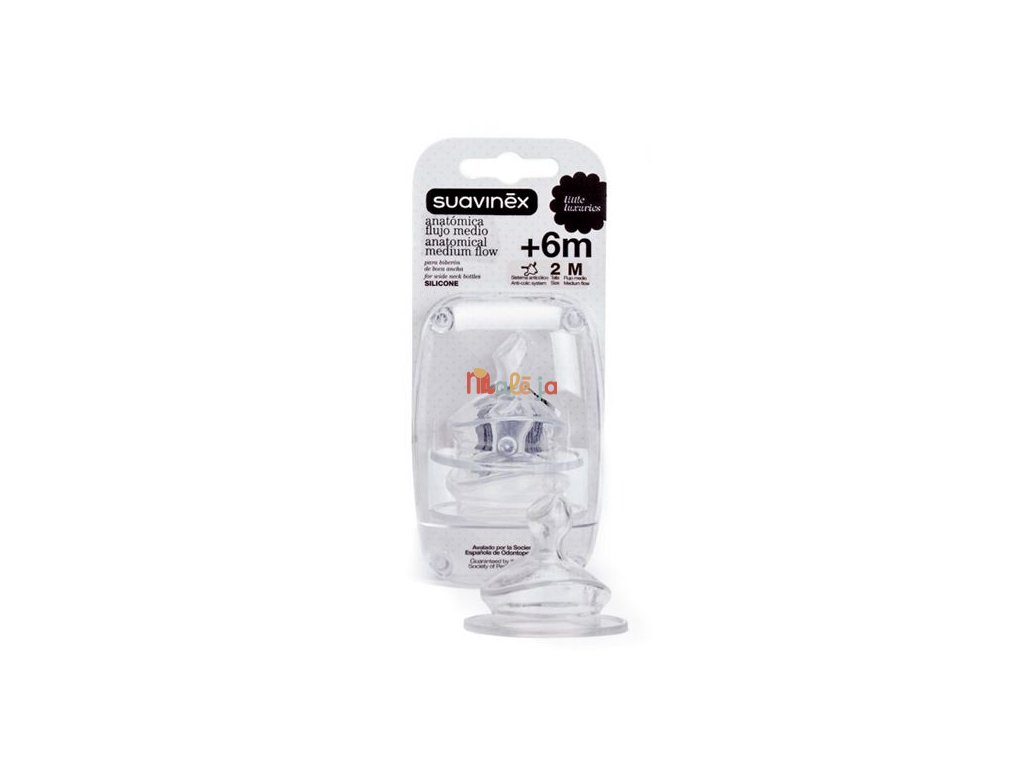Širokohrdlé náhradné cumlíky Suavinex sú kompatibilné so všetkými širokohrdlými fľašami značky Suavinex.