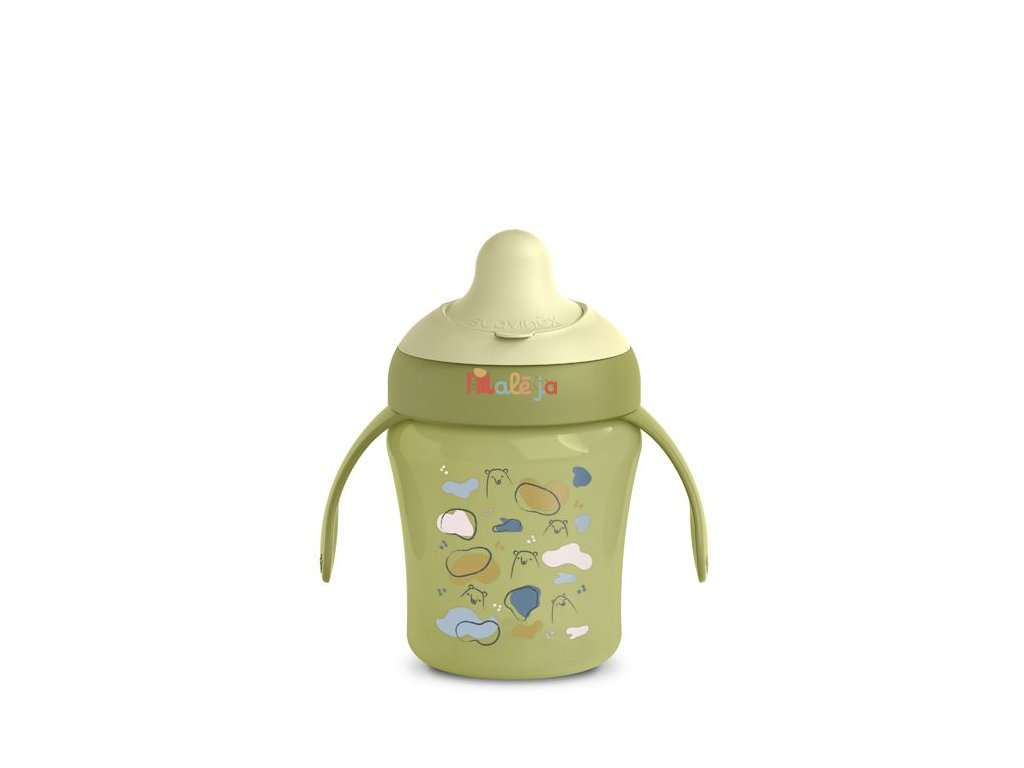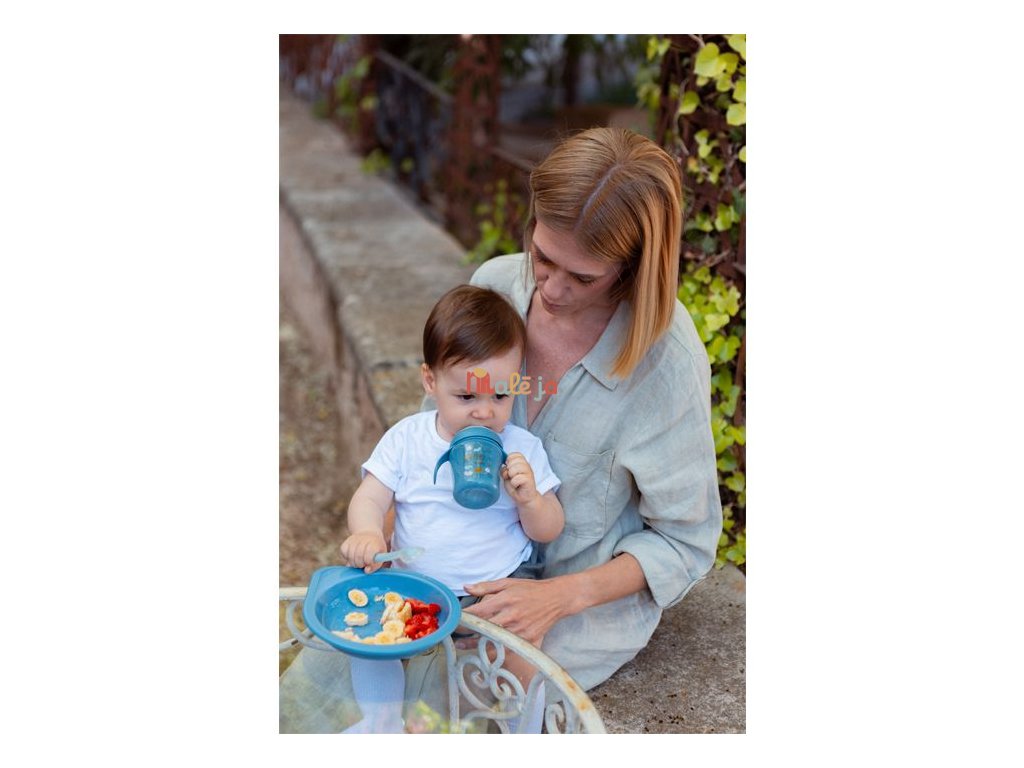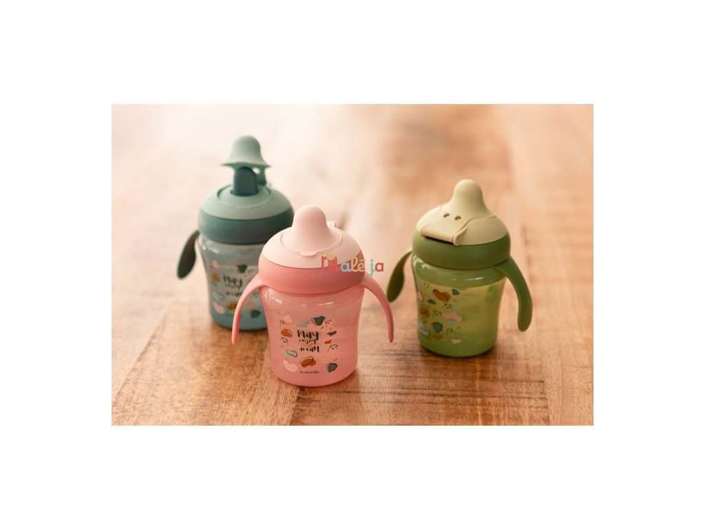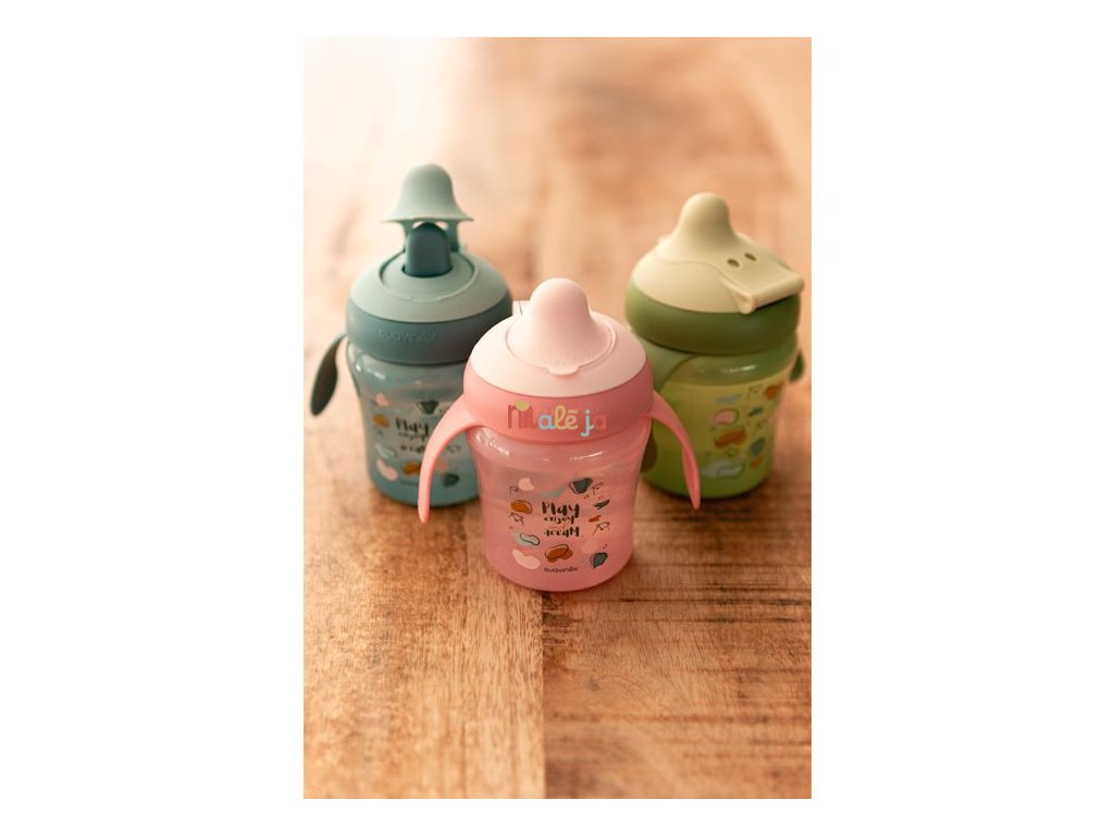 Hrnček s uškami a špeciálnym cumlíkom má ergonomický tvar a ušká pre dobrý úchop. Ušká sú odnímateľná pre prirodzený prechod na bežný hrnček či pohár. Špeciálny cumlík zabraňuje odkvapkávaniu tekutiny a škvrnám. Je chránená výklopným hygienickým viečkom. Tvrdosť prispôsobená proti prokousnutí, zároveň príjemná a bezpečná pre drobná detské ústa.