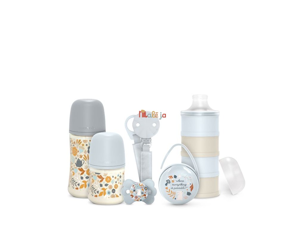 Novorodenecký set ´Vítáme ťa na svet´ je ideálnym darčekom pre čerstvo narodené bábätká. Naviac v nádhernom dizajne, ktorý prináša španielska značka Suavinex spolupracujúca s farmaceutickým priemyslom.