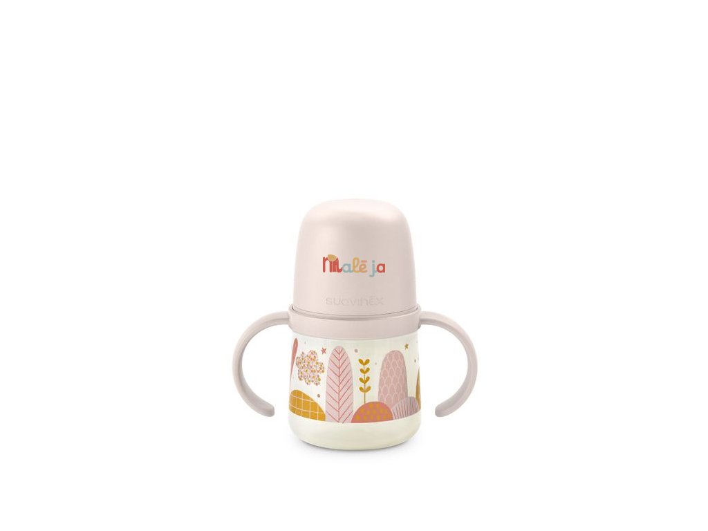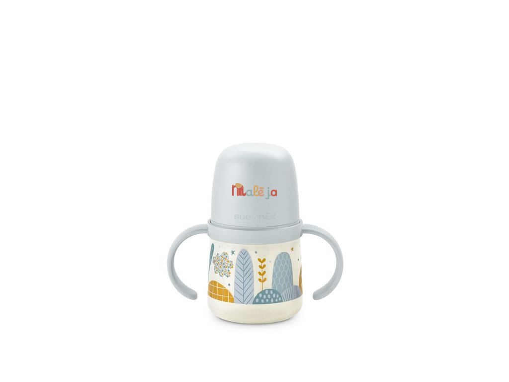 Prvá fľaša s uškami so špeciálnym SX ProTM antikolikovým cumlíkom uľahčuje prechod z dojčenskej fľaše na pitie z hrnčeka či pohára. Silikónový náustok je mäkké a materiálovo zhodné s cumlíky dojčenských fliaš a cumlíkov SX ProTM . Preto ho Vaše deti prijmú rýchlejšie ako bežný tvrdý náustok.