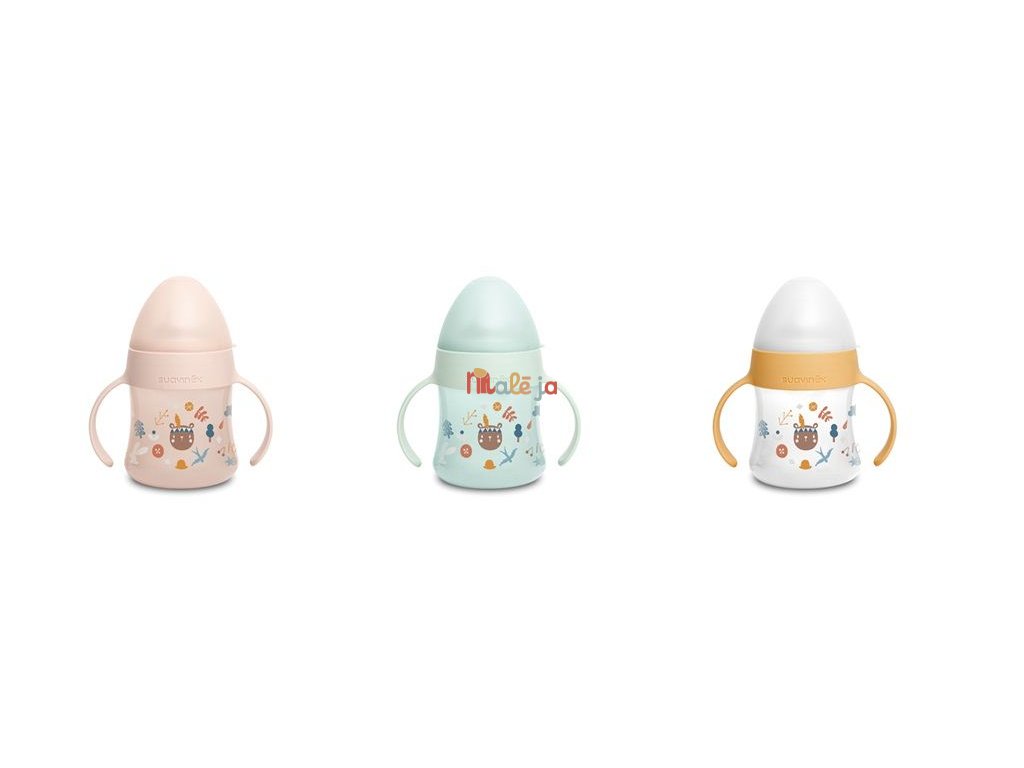Prvá fľaša s uškami se špecialnym cumlíkom uľahčuje prechod z dojčenskej fľaše na pitie z hrnčeka či pohára. Silikónový náustok je mäkký a materiálovo zhodný s cumlíkmi dojčenských fliaš, preto ho Vaše deti prijmú rýchlejšie ako bežná tvrdá pítka. Prvá fľaša má ergonomický tvar a držadlá vhodná pre drobné detské ruky, ktoré umožnia jej ľahké uchopenie. Netečúci cumlík zabraňuje vytekaniu tekutiny z fľaštičky.