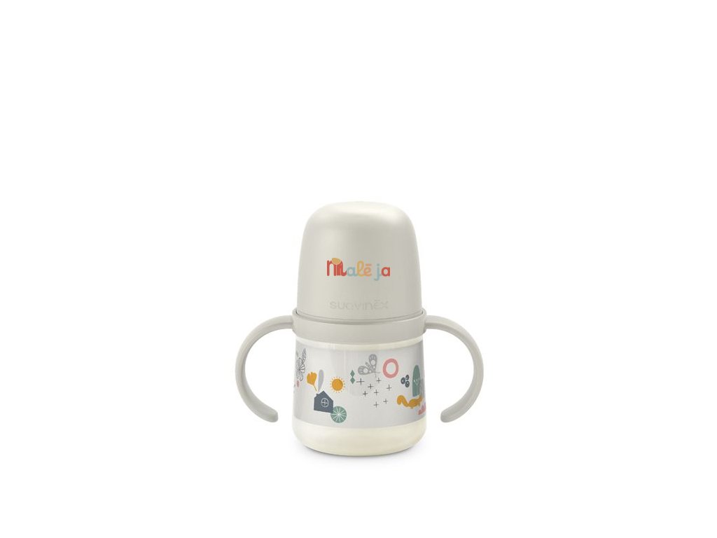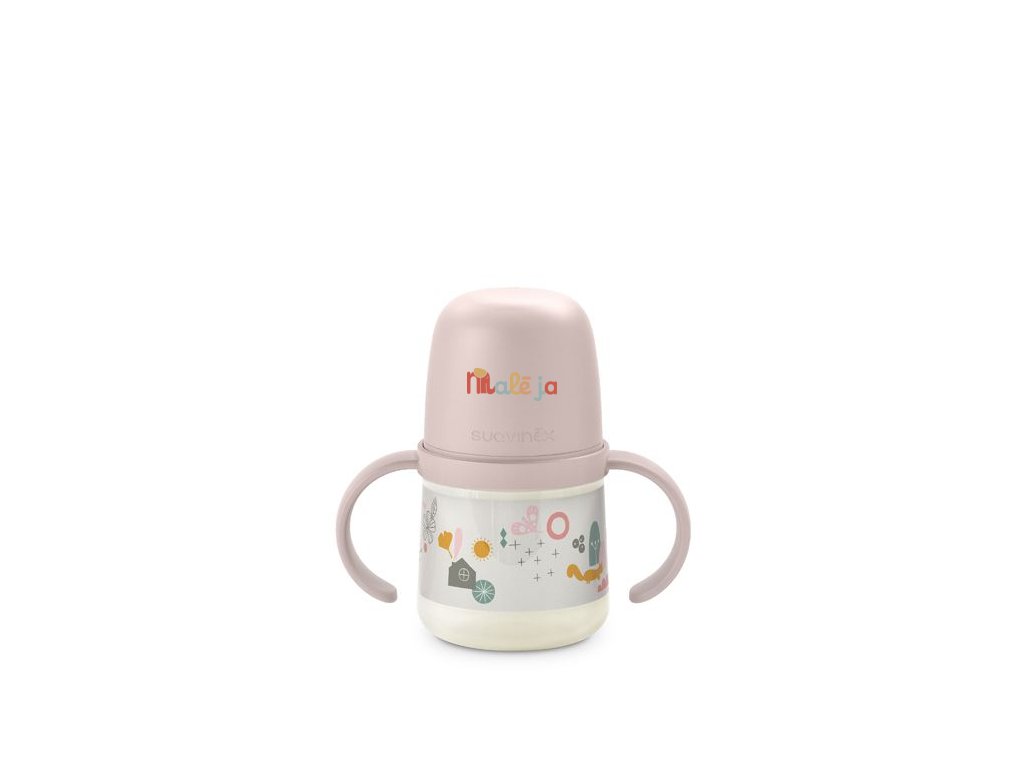 Prvá fľaša s uškami so špeciálnym SX ProTM antikolikovým cumlíkom uľahčuje prechod z dojčenskej fľaše na pitie z hrnčeka či pohára. Silikónový náustok je mäkké a materiálovo zhodné s cumlíky dojčenských fliaš a cumlíkov SX ProTM . Preto ho Vaše deti prijmú rýchlejšie ako bežný tvrdý náustok.