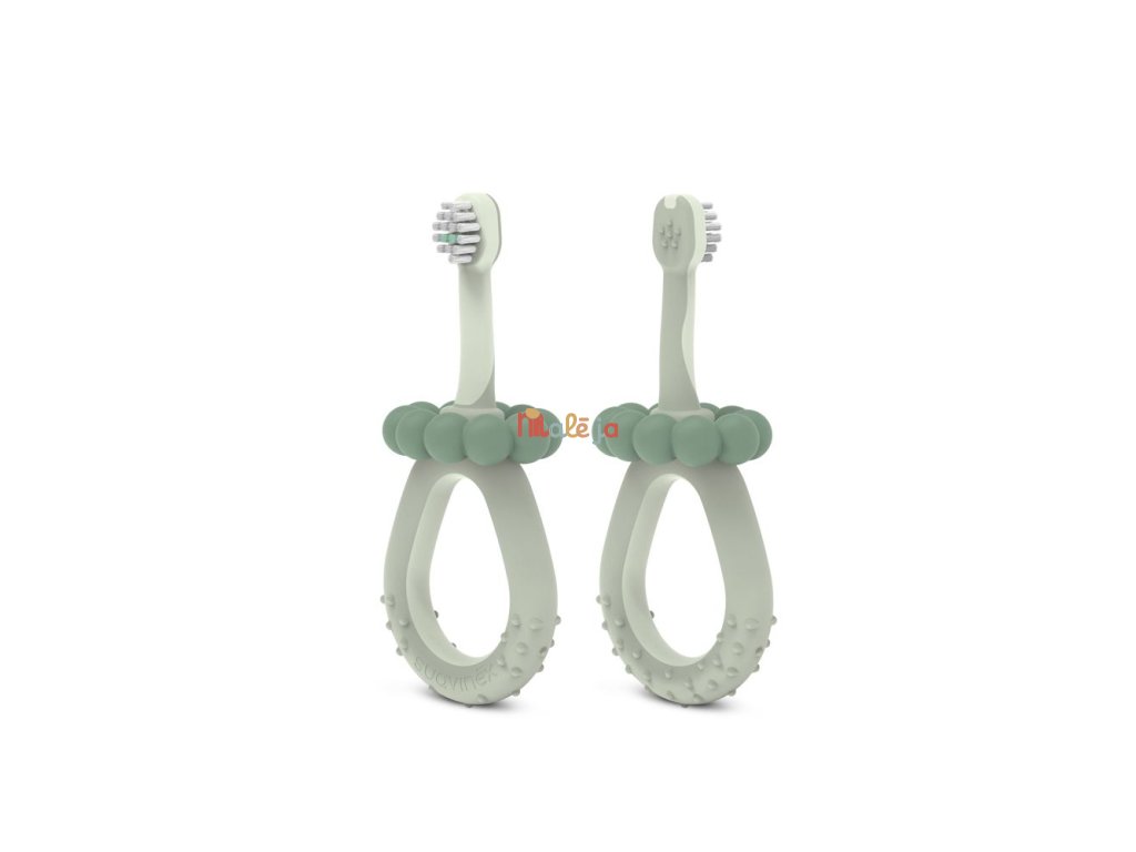 Praktická sada obsahuje všetko, čo potrebujete pre jemnú starostlivosť o ďasná a prvé zúbky: