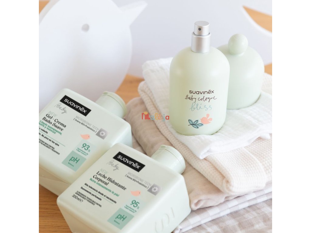 Hydratačné telové mlieko Suavinex intenzívne vyživuje, chráni pokožku pred vysušením a zanecháva ju upokojenú, hebkú, jemnú a jemne prevoniavanú. Obsahuje 95 % zložiek prírodného pôvodu vrátane vody.