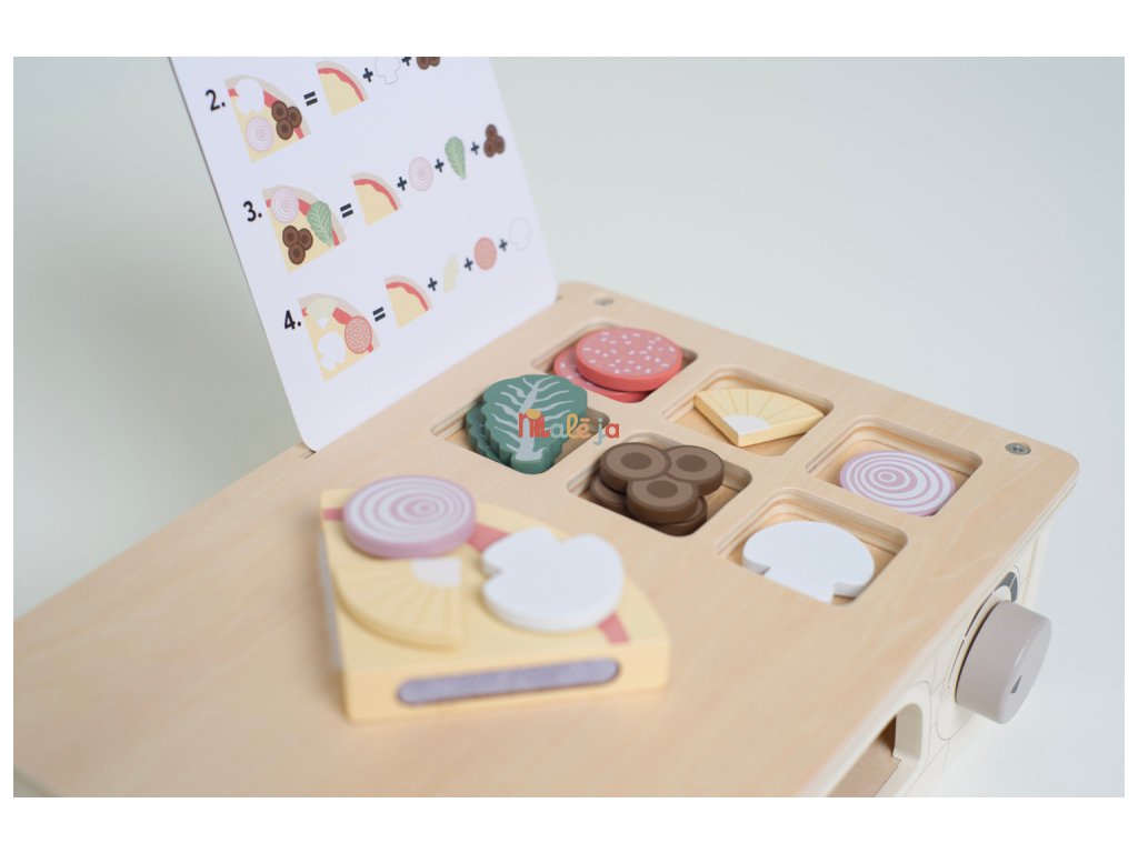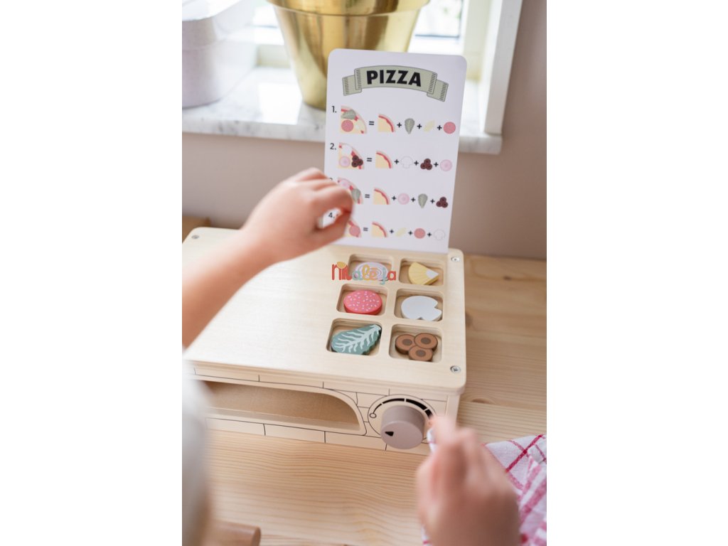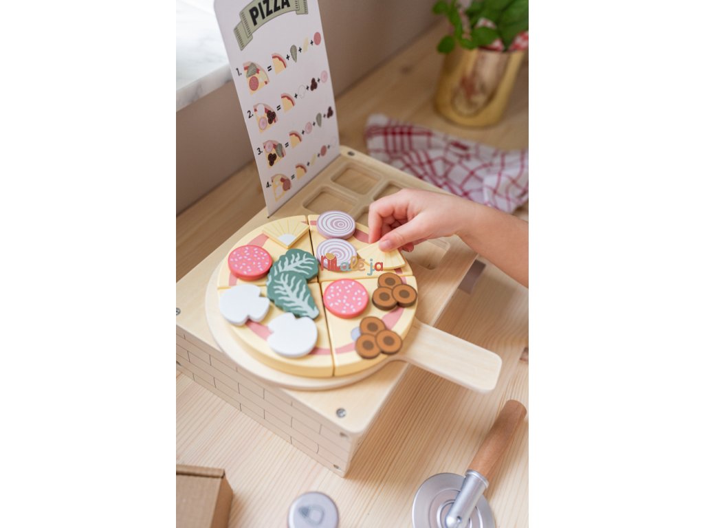 Obsahuje veľký výber rôznych ingrediencií, aby si vaše dieťatko mohlo pripraviť svoju obľúbenú pizzu. Ingrediencie sa na pizzu jednoducho pripevňujú pomocou suchého zipsu. Podávajte túto nápaditú pizzu presne tak, ako ju chcete, so všetkým, čo máte radi alebo sa riaďte receptom z priloženého jedálneho lístka. S realistickým dizajnom bude mať vaše dieťa hodiny tvorivej hry a bude skúšať rôzne kombinácie chutí a pripravovať jedlo.