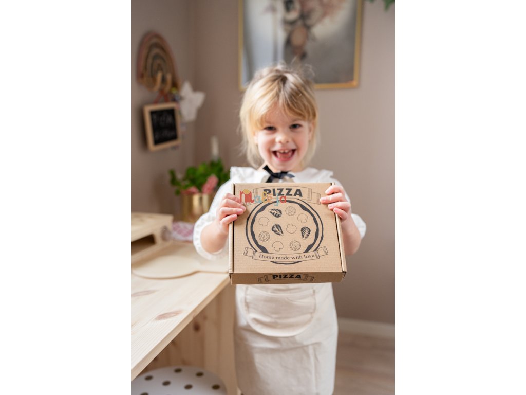 Pec na pizzu obsahuje: 1x Drevená pec na pizzu, 4x drevené plátky pizze, 1x Paradajková omáčka, 1x parmezán, 1x Drevený krájač na pizzu, 1x Menu, 1x lopata na pizzu, 1x krabica na pizzu, 2x huby, 2x cibuľové krúžky, 2x plátky feferóniek, 2x kúsky ananásu, 2x olivy, 2x šalátové listy