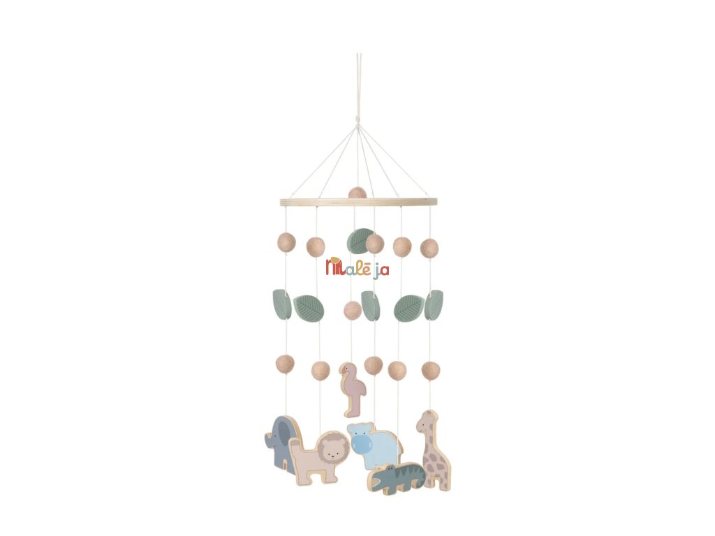 Náš rozkošný drevený kolotoč so zvieratkami zo savany je dokonalou dekoráciou do detskej izbičky nad postieľku alebo prebaľovací pult.