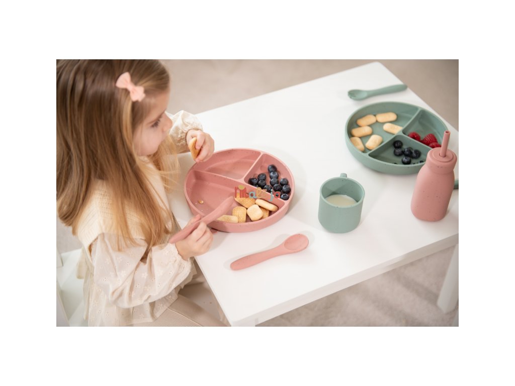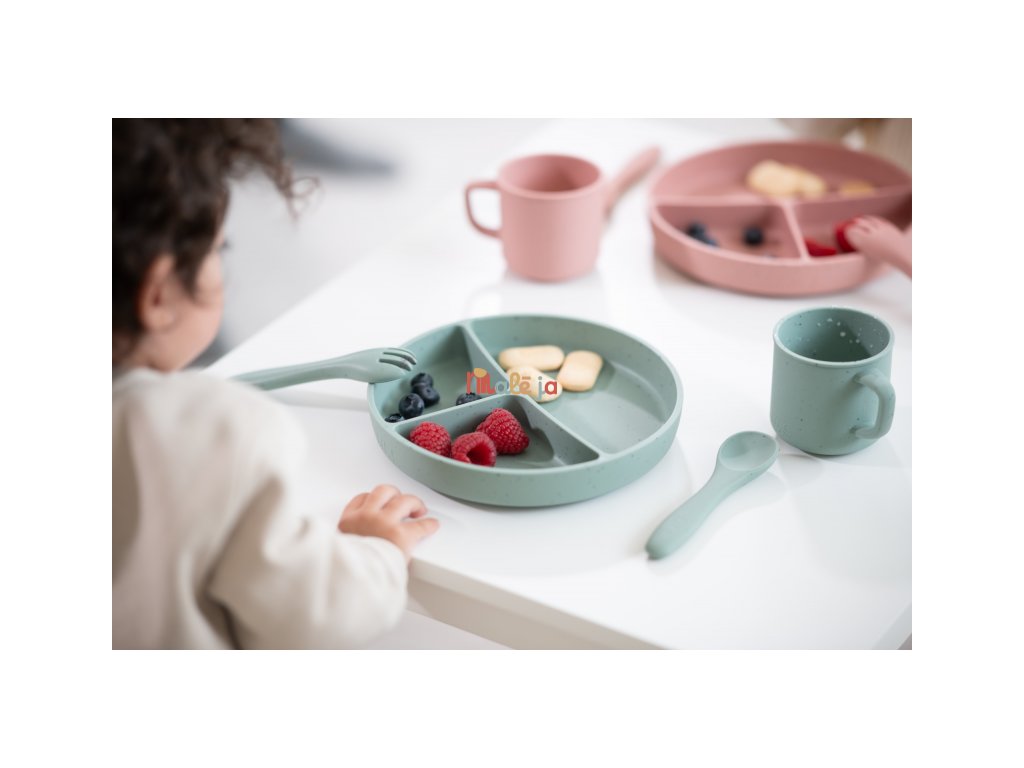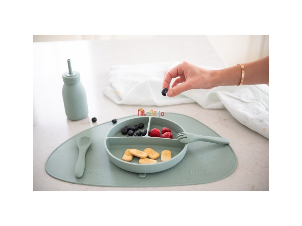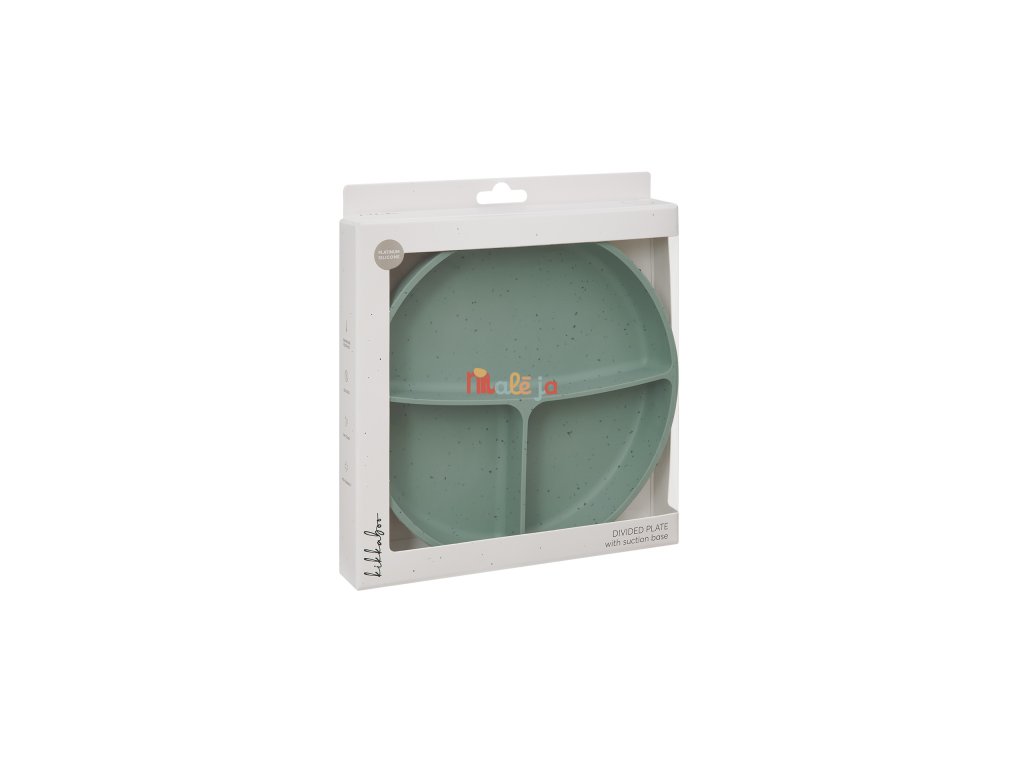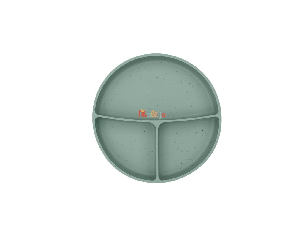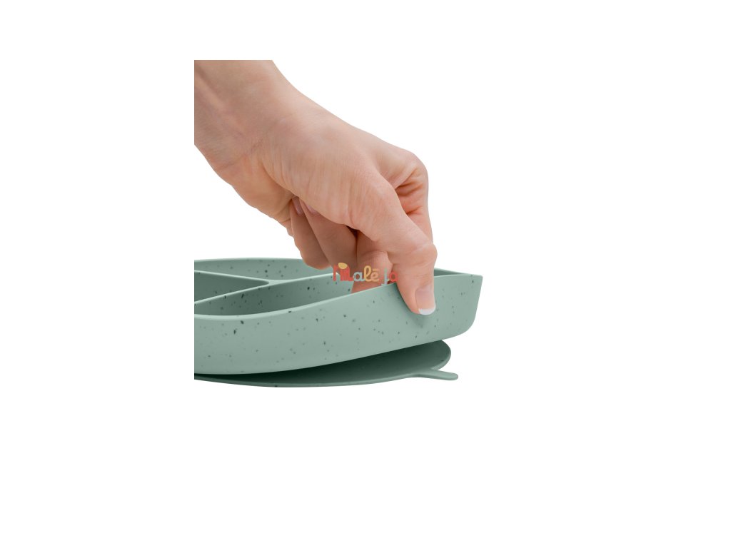 Dělený talíř KikkaBoo Platinum Silicone se třemi přihrádkami a přísavkou je ideální pro první příkrmy i samostatné dětské stravování. Díky přísavce neklouže po stole a usnadňuje tak dítěti nabírání jídla. Skvělý pro přechod na samostatné krmení: Tři oddělené přihrádky pomáhají dítěti samostatně objevovat různé chutě Přísavka pevně přidrží talíř k podložce a minimalizuje tak riziko vysypání či rozlití jídla Široká, stabilní základna s vysokými okraji a jemný silikonový materiál zajišťují snadné nabírání i bezpečné používání Prémiový silikonový materiál: Vyrobeno ze 100 % potravinářského platinum silikonu – měkký, pružný materiál bez zápachu Bez BPA, hypoalergenní a velmi odolný Odolný teplotám od –40 °C do 230 °C – vhodné do mrazáku, mikrovlnné trouby i sterilizátoru Snadná údržba: Vhodné do myčky, mikrovlnné trouby i sterilizátoru Snadno omyvatelný materiál – ideální pro každodenní použití doma i na cestách Rozměry: 19,5 × 19,5 × 3,3 cm Objem: 600 ml Hmotnost: 305 g Složení: 100 % platinum silikon Vhodné pro děti od 6 měsíců.