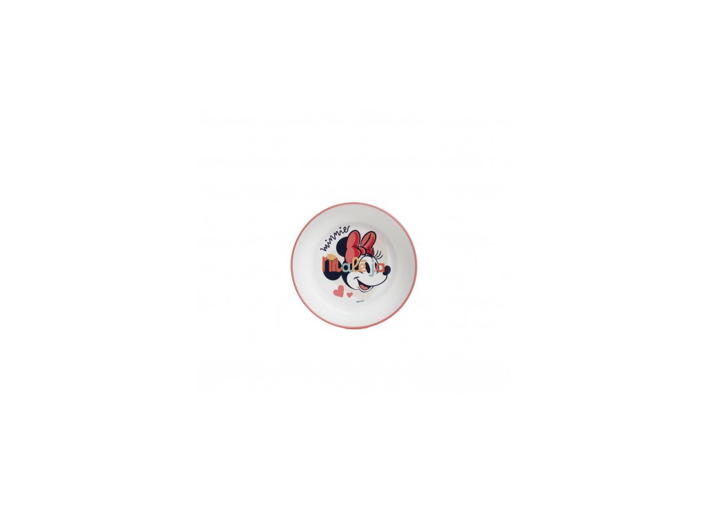 NEVYHNUTNÁ JEDÁLENSKÁ SÚPRAVA MINNIE PRE DETI OD 2. VEKU: VEĽKÝ TANIER, POHÁR, PROTIŠMYKOVÁ MISKA A PRÍBOROVÝ SET DISNEY MINNIE