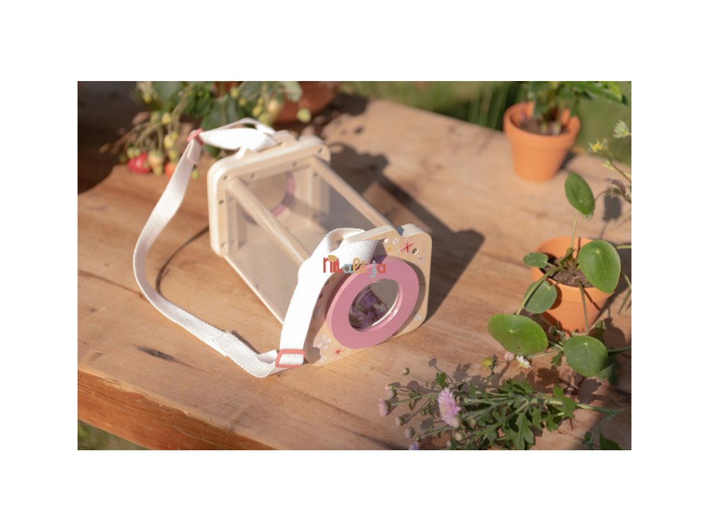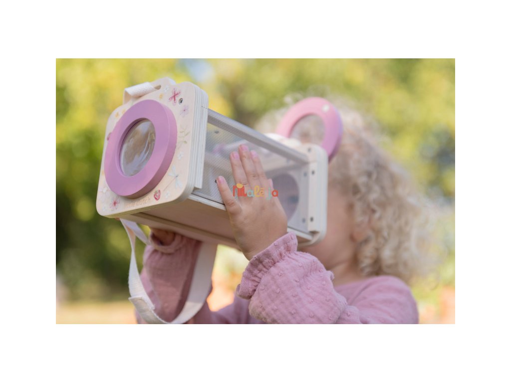 Unikátna pomôcka pre malých zvedavých prírodovedcov umožní deťom skúmať zblízka a bezpečne hmyz, ktorý žije na záhrade, na lúke alebo v lese. Veľká lupa slúži aj ako dvierka, ktorými sa hmyz dostane dovnútra boxu. Bočné steny sú zo sieťoviny, aby bol hmyz vo vnútri v bezpečí a mohol dýchať. Popruh umožňuje ľahké nosenie na krku s voľnými rukami. Po skončení pozorovania hmyz môžete bez problémov vypustiť späť do prírody, kam patrí!