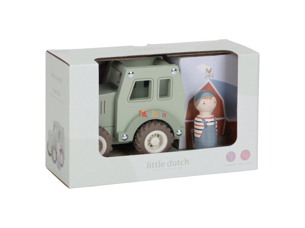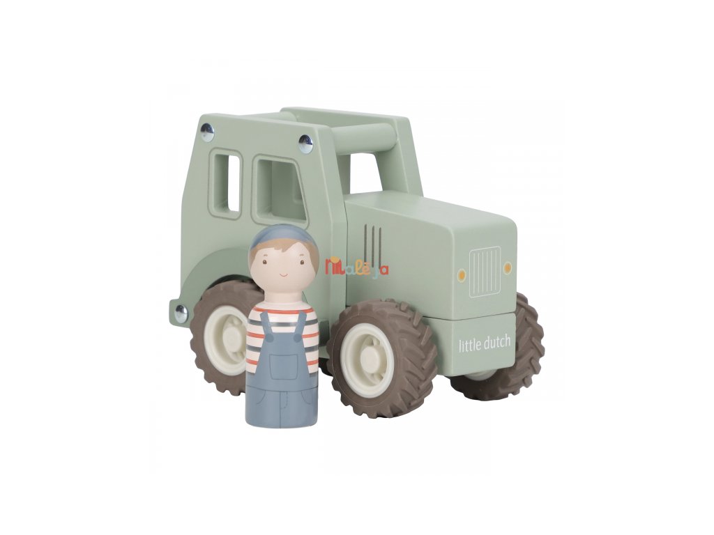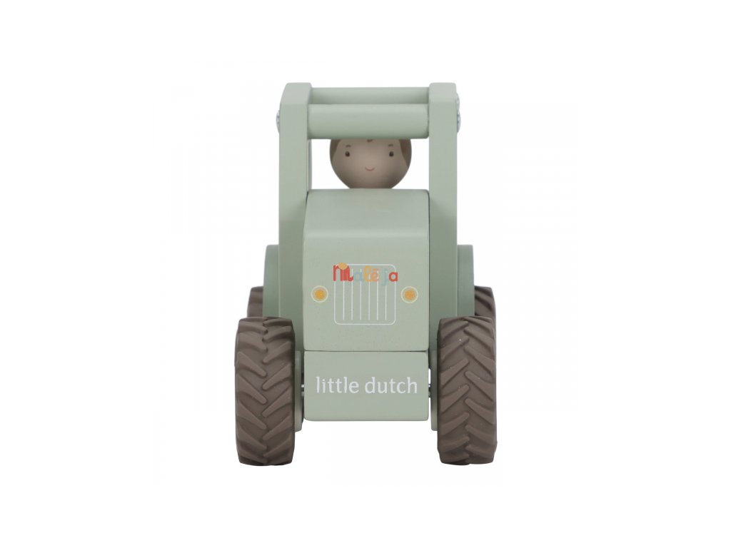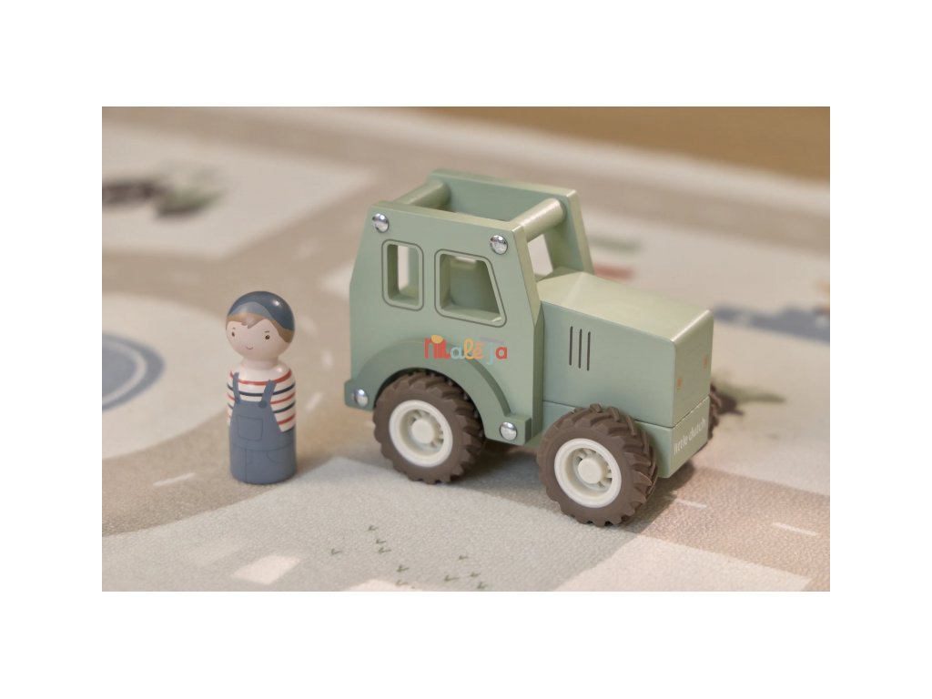 Naštartujte motor a vyrazte s traktorom na pole! Sympatický traktorista už čaká, kým vyrazíte na cestu. Vďaka gumovým pneumatikám sa traktor v krásnom drevenom prevedení hladko pohybuje po podlahe. Otvorený dizajn zaisťuje ľahké uchopenie aj pre najmenšie ruky. Nadčasová hračka, ktorá rozvíja fantáziu aj jemnú motoriku.