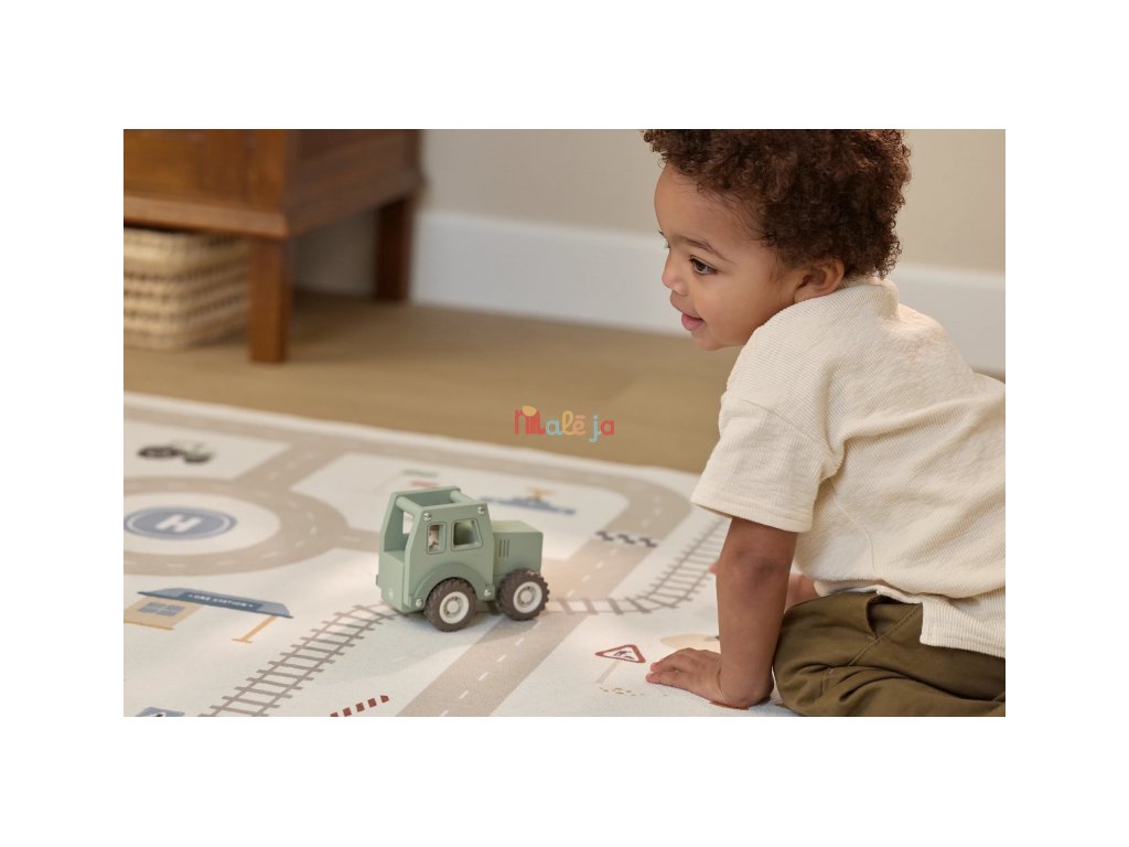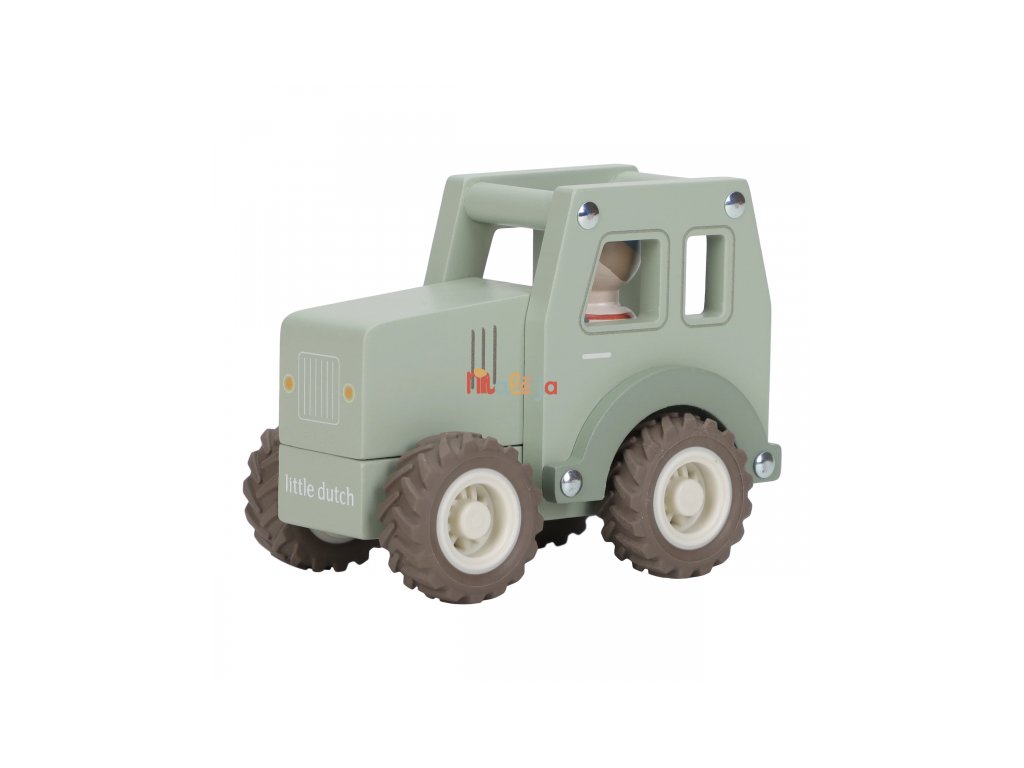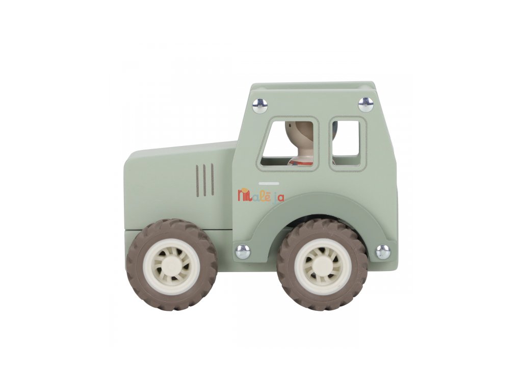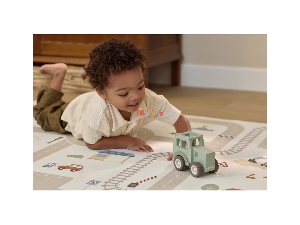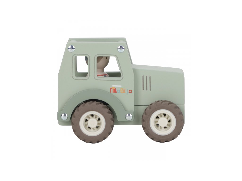 Naštartujte motor a vyrazte s traktorom na pole! Sympatický traktorista už čaká, kým vyrazíte na cestu. Vďaka gumovým pneumatikám sa traktor v krásnom drevenom prevedení hladko pohybuje po podlahe. Otvorený dizajn zaisťuje ľahké uchopenie aj pre najmenšie ruky. Nadčasová hračka, ktorá rozvíja fantáziu aj jemnú motoriku.
