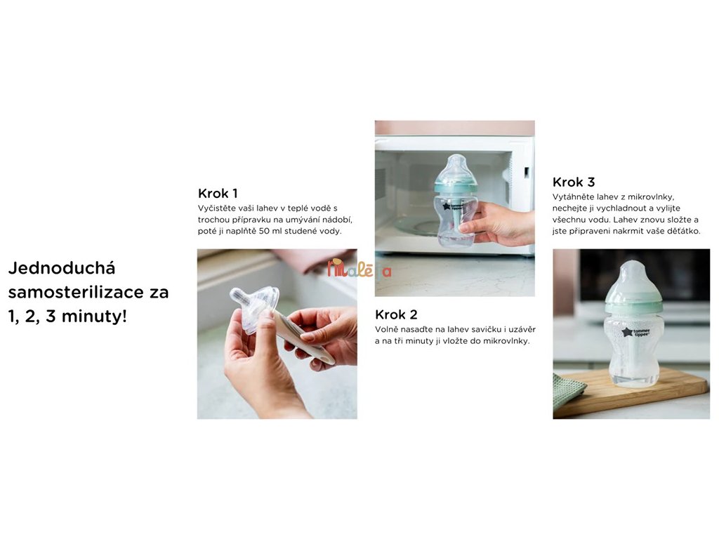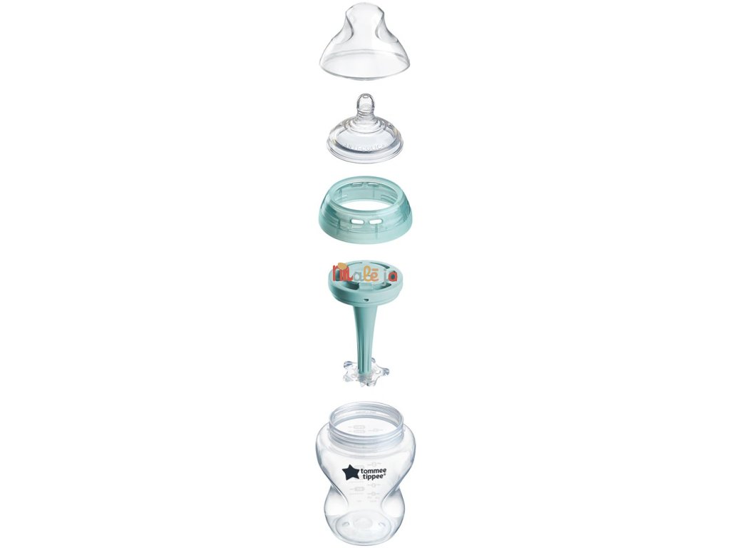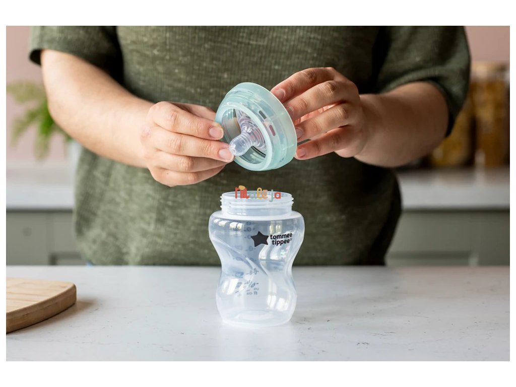 S touto fľašou, navrhnutou s dôrazom na pohodlie vášho bábätka, sa každé kŕmenie stane príjemným a bez stresu. Kojenecká fľaša Tommee Tippee Advanced Anti-Colic vďaka špeciálnemu odvzdušňovaciemu ventilu minimalizuje množstvo vzduchu v brušku bábätka a tým pomáha predchádzať plynatosti, refluxu, nadúvaniu aj prekrmovaniu. Fľaša s pomalým prietokom je ideálna pre novorodencov. Cumlík svojím tvarom napodobňuje matkin prsník, čím podporuje prirodzené prisatie a uľahčuje prechod medzi dojčením a kŕmením z fľaše. Vyrobený je z mäkkého, pružného a zdravotne nezávadného silikónu, ktorý sa ohýba a naťahuje podobne ako bradavka. Veľkou výhodou je aj rýchla samosterilizácia v mikrovlnnej rúre, vďaka ktorej máte istotu, že fľaša bude vždy dokonale čistá.