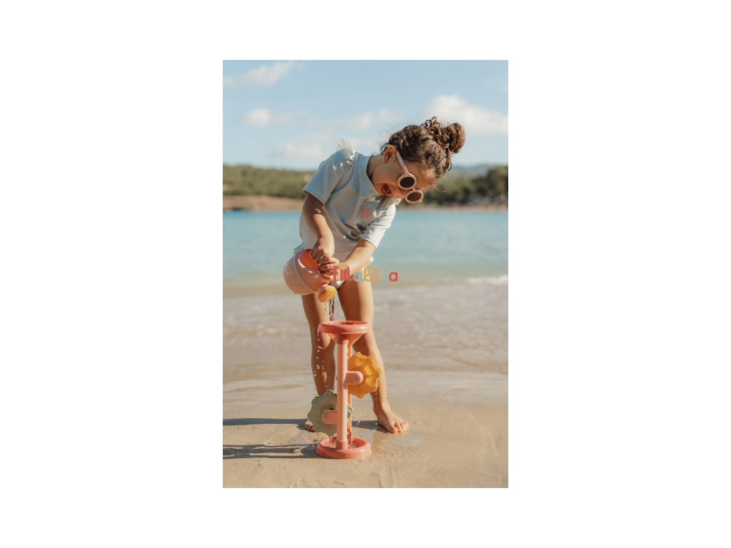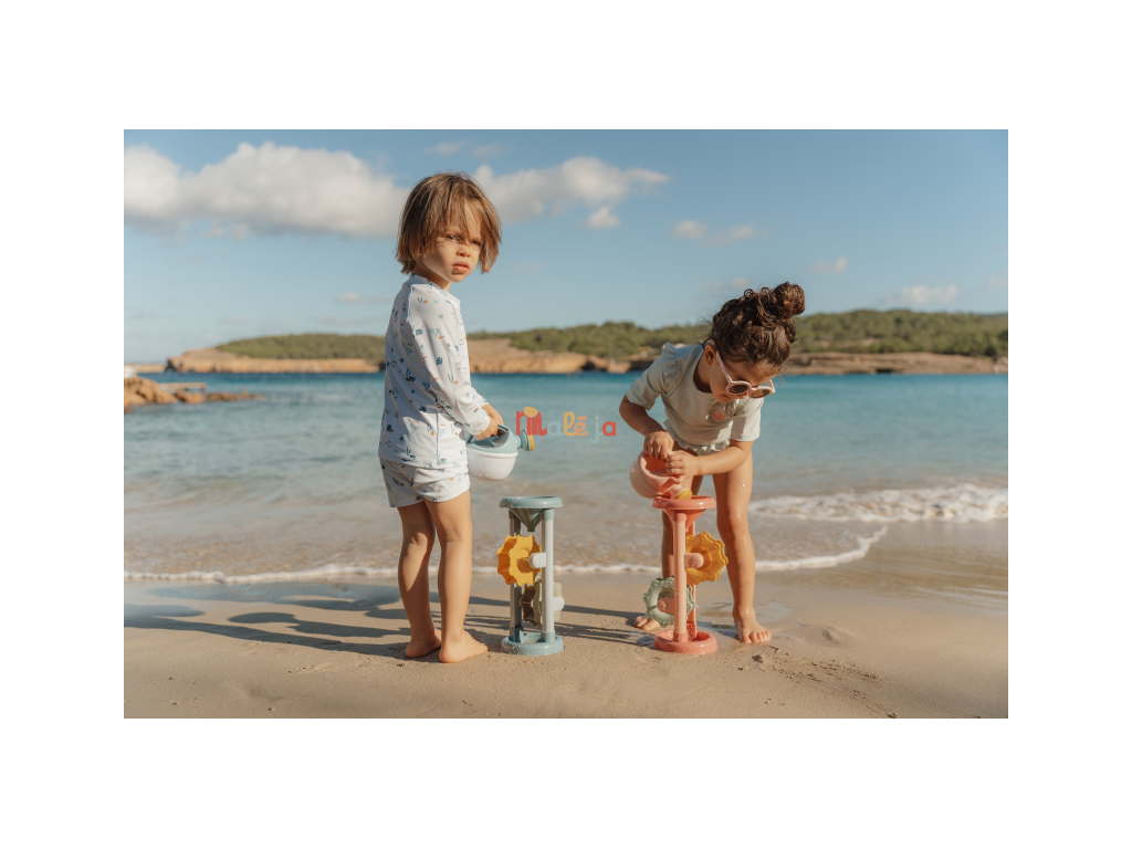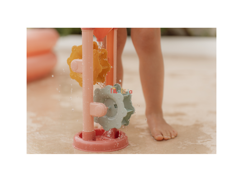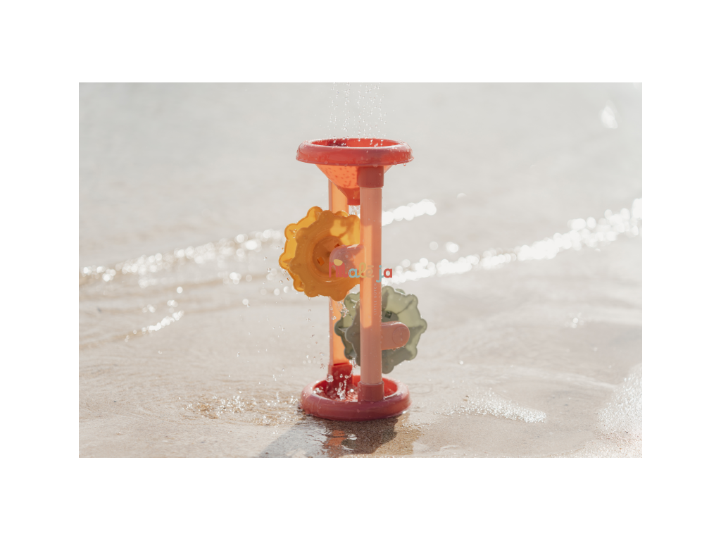 Hračka do vody aj na piesok, ktorá vaše dieťa zabaví na dlhú dobu! Stačí do lievika v hornej časti naliať vodu alebo nasypať piesok a potom už len pozorovať, ako sa mlynské kolesá roztáčajú. Hračka vhodná na záhradu aj na pláž je vyrobená z pevného, kvalitného plastu. Rozmery: 31 x 16 x 11 cm Vhodné pre deti od 18 mesiacov.