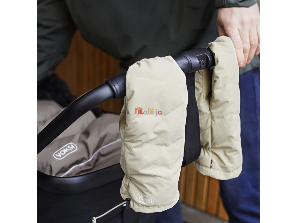 Rukavice sú navrhnuté tak, aby sa zmestili na všetky ruky aj typy kočíkov. Pripevnite palčiaky ku kočíku tak, že na špičke rukavice otvoríte suchý zips a umiestnite ho okolo rukoväte. Jednoduchú šnúrku na strane možno zatiahnuť rukavice, aby obopli zápästie a nedostala sa do nich zima. Kombinujte a zlaďte farby rukavíc s fusakmi a detskými topánočkami Voksi.
