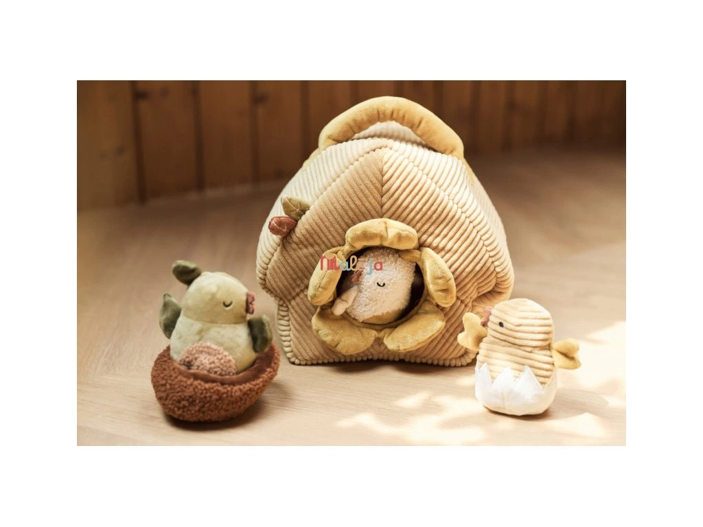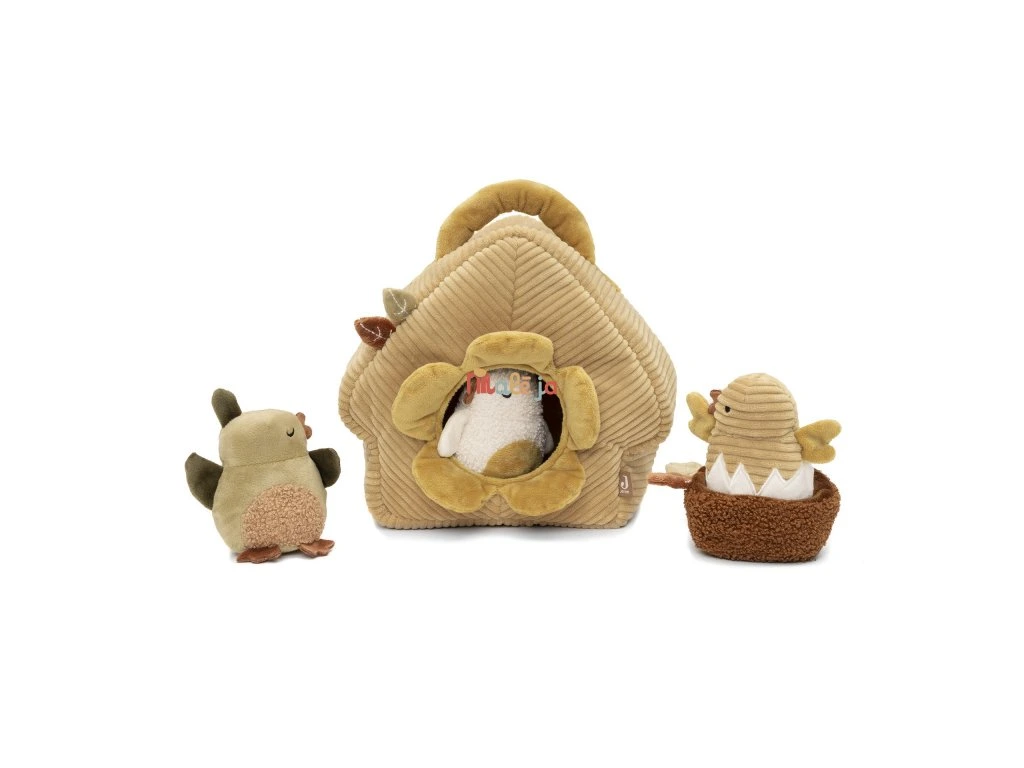 Veselá vtáčia búdka s troma rozkošnými vtáčikmi prinesie vášmu dieťaťu nekonečné hodiny objavovania a hrania. Schovávanie vtáčikov do búdky aj ich vyťahovanie von pomáha rozvíjať detskú zvedavosť, fantáziu aj jemnú motoriku.