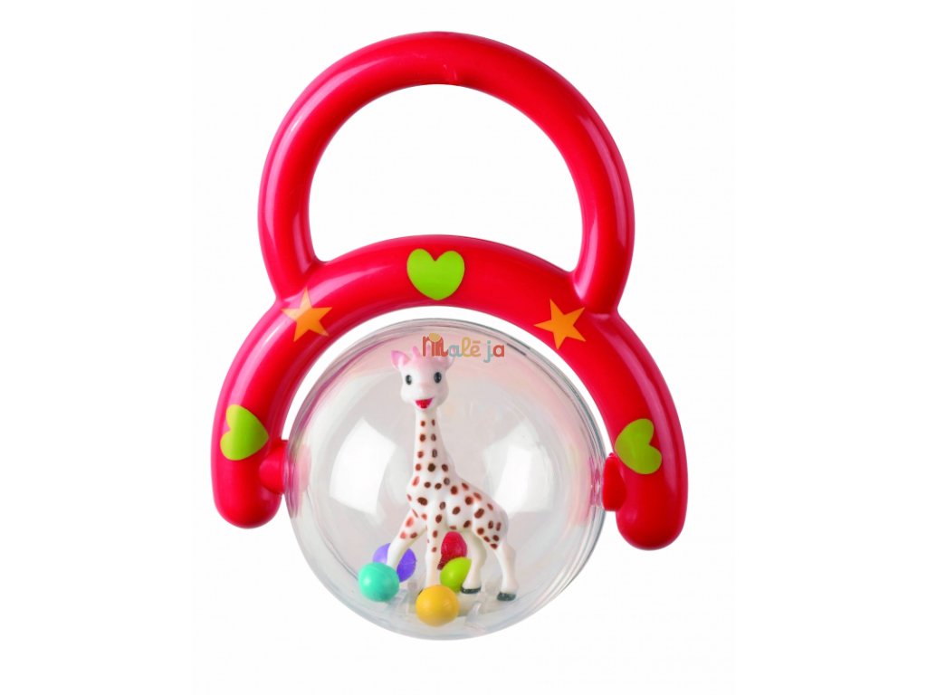 Vďaka držadlu ju môže dieťa ľahko uchopiť a priehľadná bublina s malou žirafou Sophiou vo vnútri sa otáča dokola. Zatraste a užívajte si jemné hrkanie farebných guľôčok.