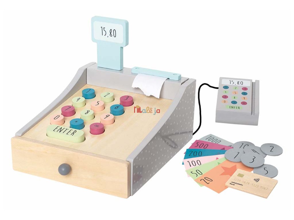 Táto milá farebná drevená pokladňa je plná rôznych zábavných funkcií.