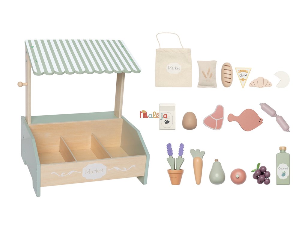 Tento nádherný drevený stánok je dokonalým doplnkom pre deti, ktoré sa rady hrajú a predávajú všetko od čerstvej zeleniny až po domáci chlieb.