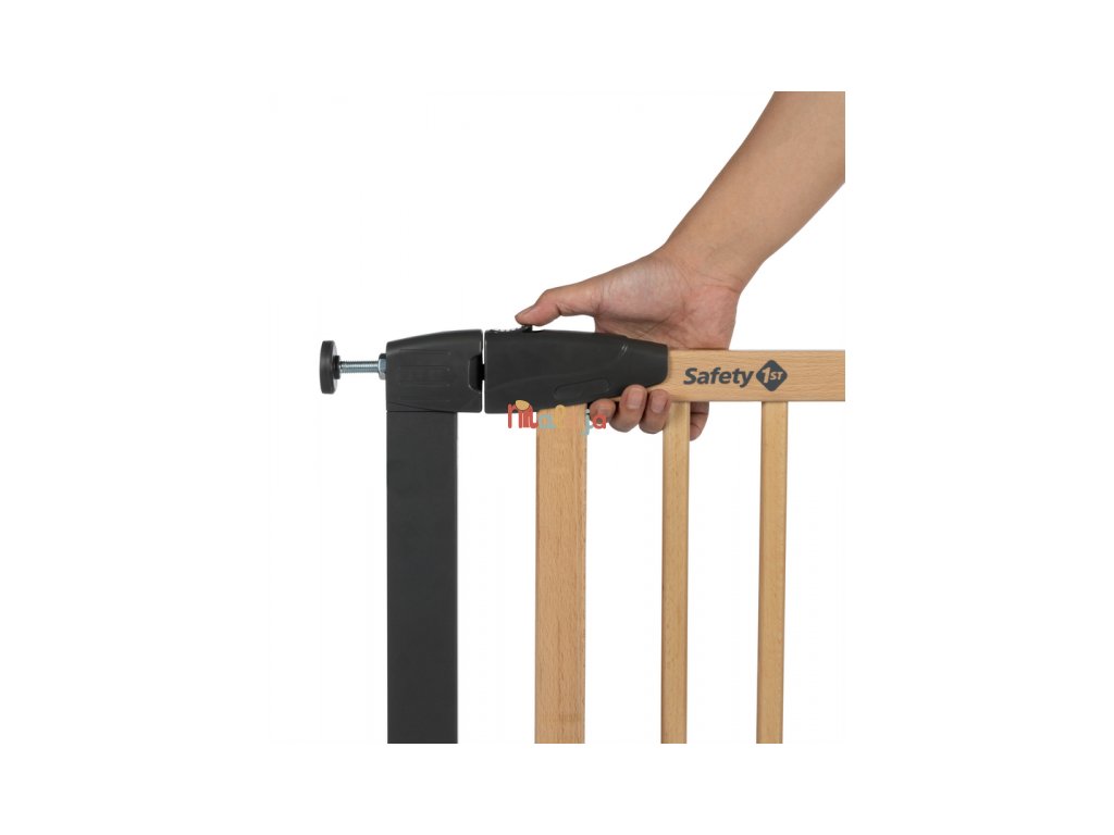 Safety 1st Simply Close Metal & Wood je zábrana v kombinácii kovu a dreva s jednoduchou inštaláciou bez vŕtania. Zábrana je vhodná do dverí či priestoru medzi stenami s rozmermi 73 cm až 80 cm a je možné ju rozšíriť pomocou samostatne dostupných predĺžení až na 94 cm.