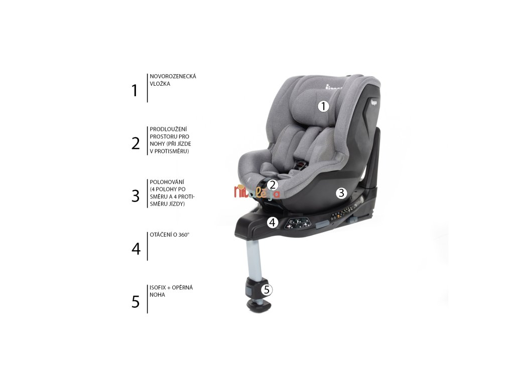 Autosedačka prešla najprísnejšími testami v Holandsku, spĺňa normu ECE R129 i-Size a je vhodná pre deti od narodenia do 105 cm alebo 18 kg. Je plne otočná (360°), čo umožňuje nielen meniť smer jazdy vo všetkých 4 nastaviteľných polohách, ale zaručuje aj oveľa pohodlnejšiu manipuláciu s dieťaťom pri nastupovaní a vystupovaní.